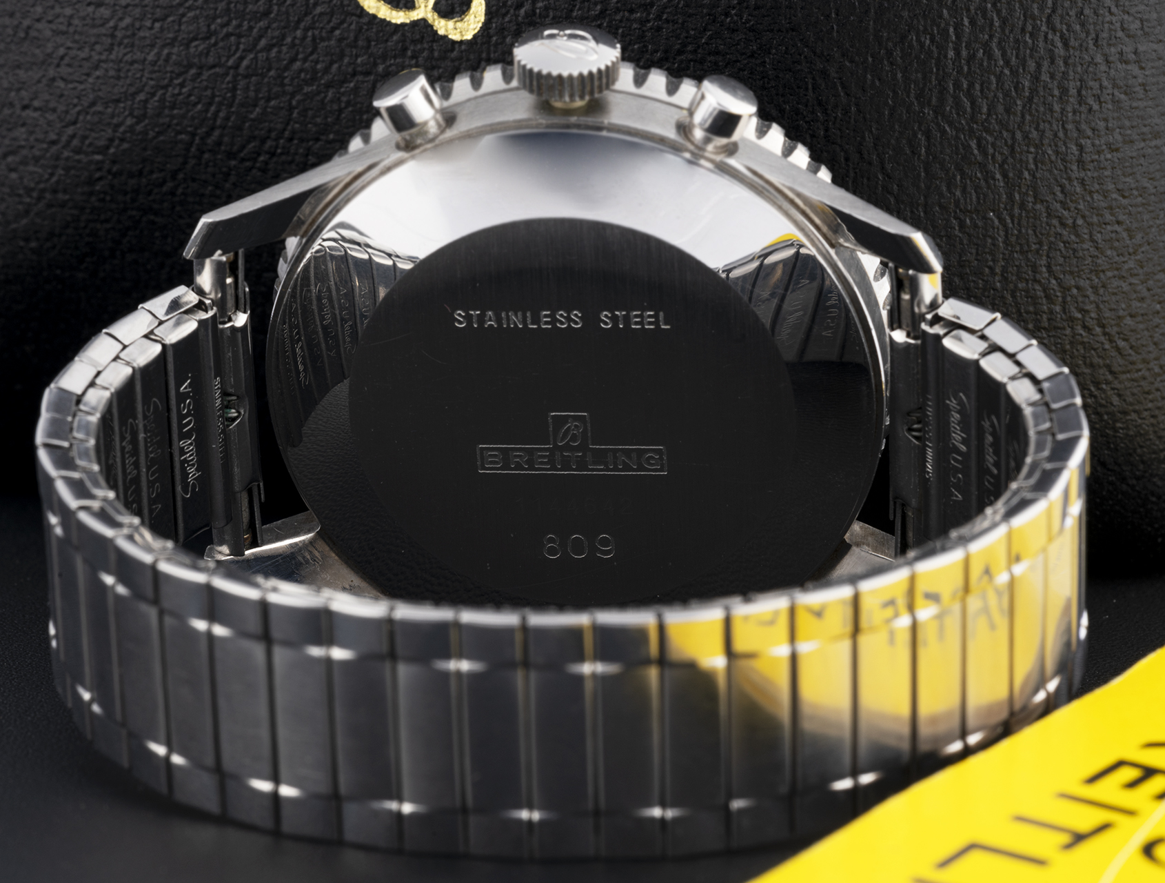 The property of a British owner for 50 years, this superb Navitimer Cosmonaute is from the final series before they changed to self-winding and date models. The case is unpolished. The lacquered dial is deep black with bright, vivid markings; they almost never appear in such immaculate condition (well, Watch Club has been lucky to source some of the world's most perfect examples!).