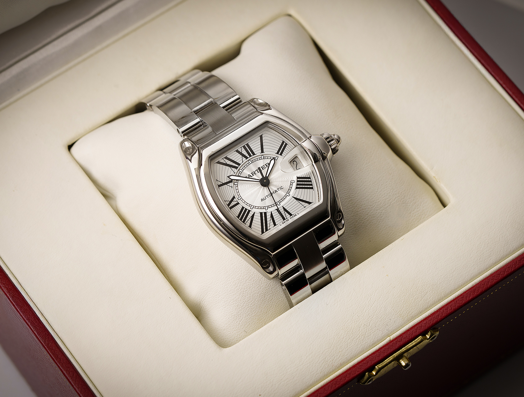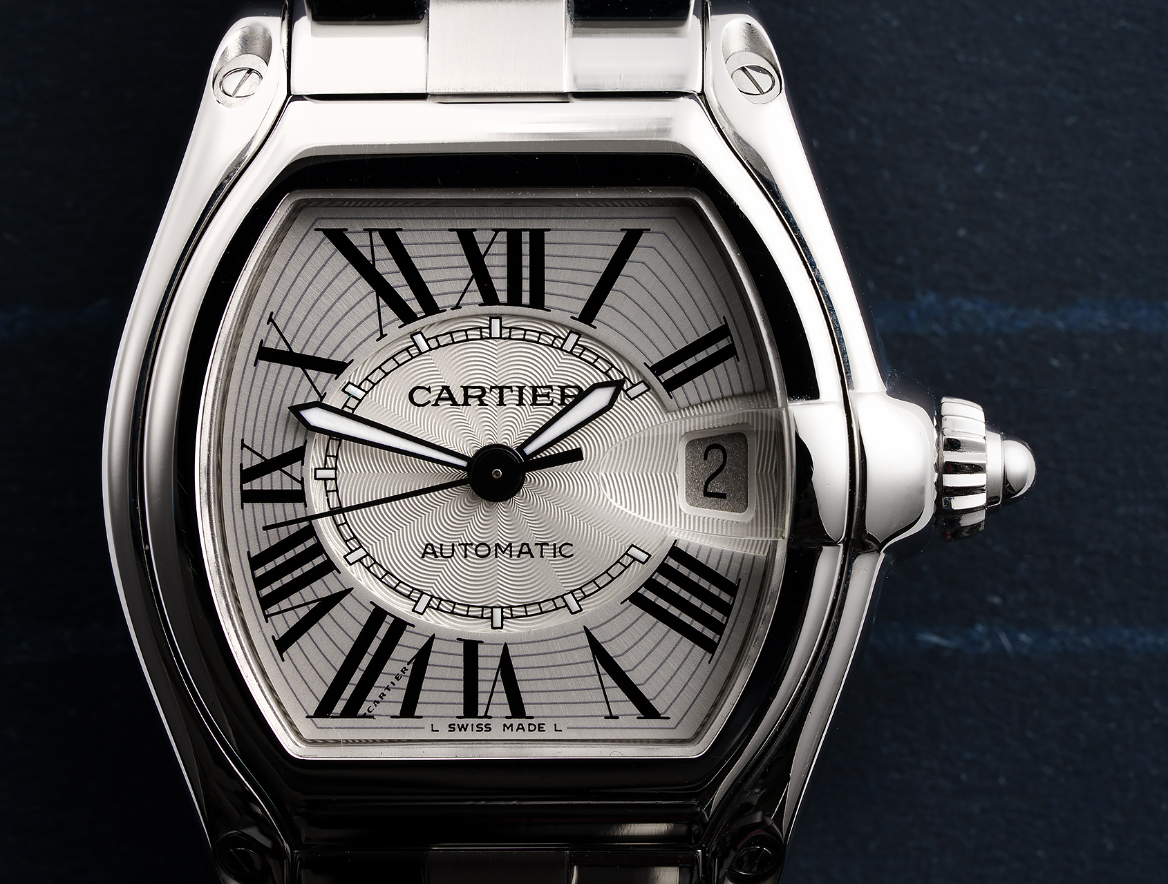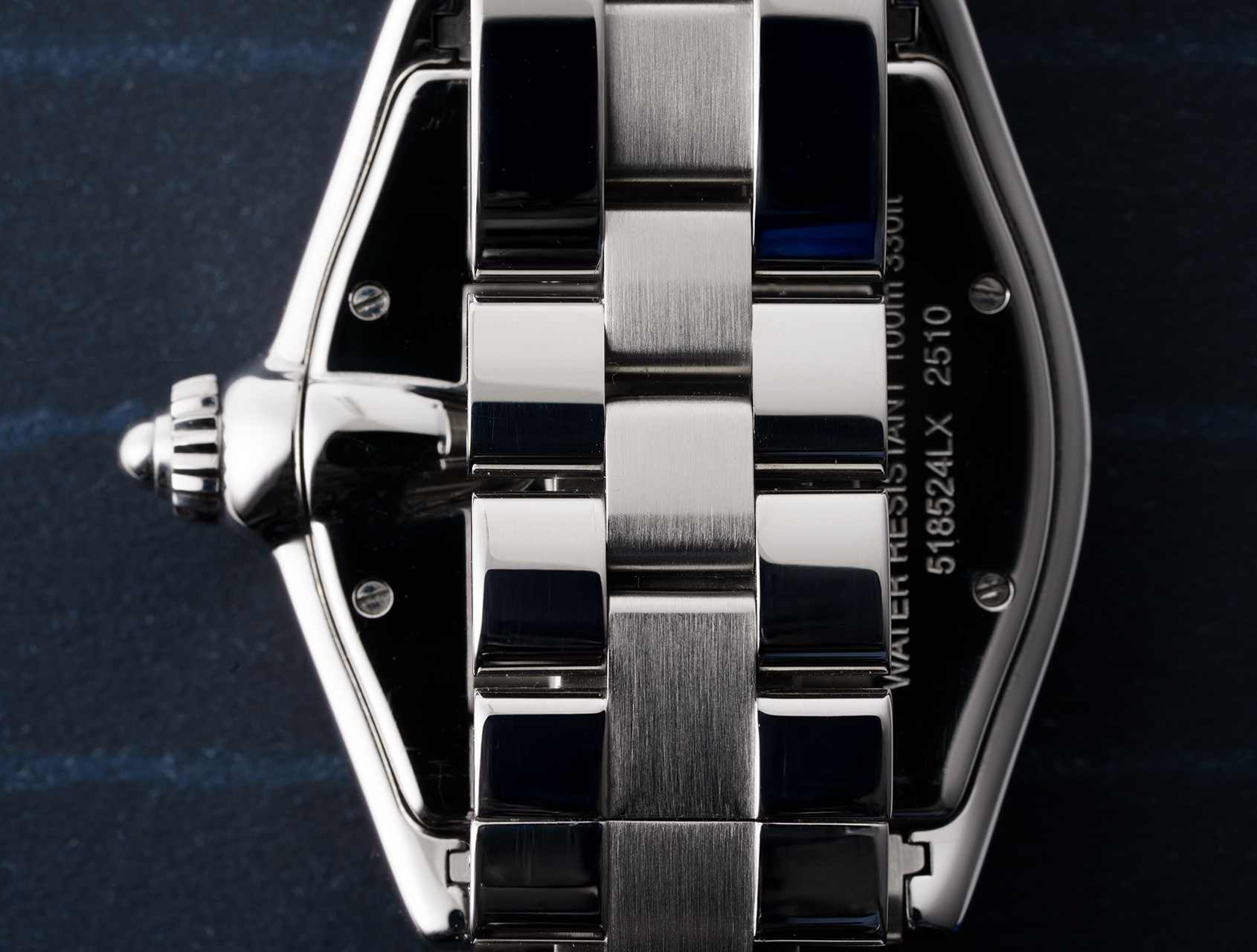 Sporting a classic Cartier silver dial with black roman numerals and hidden Cartier signature, this stainless steel ref. 2510 is powered by Cartier's automatic movement. Fitted to a steel bracelet with the superb quick-release system.