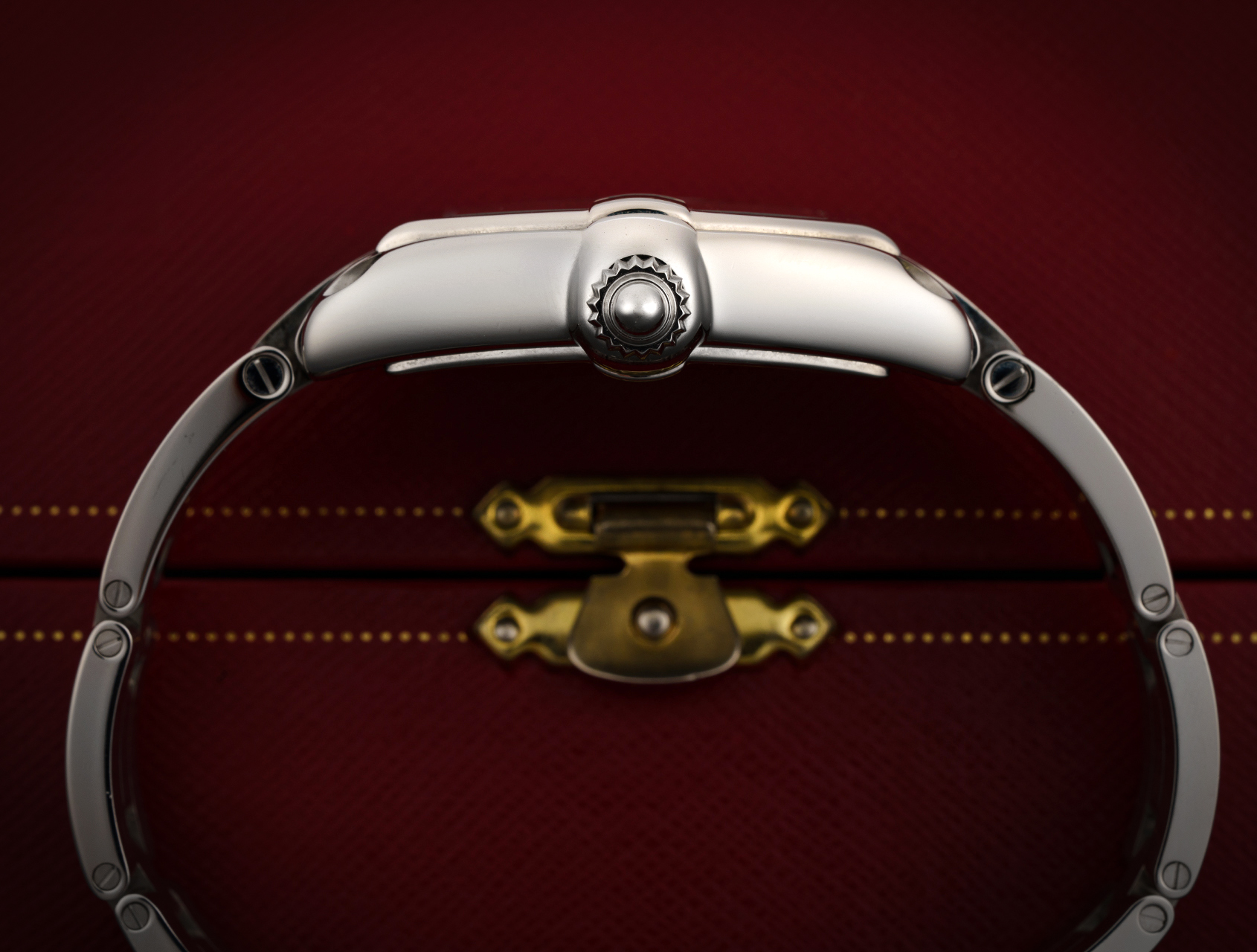 Water resistant to 100m. Presented with its Cartier box and our 2 year Watch Club warranty.
