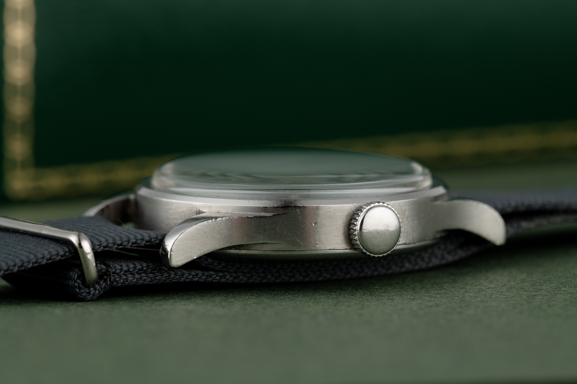 During the 1940's, after submitting their requirements for military spec watches, the British MOD selected 12 respected Swiss manufacturers to produce watches for their personnel. This select group are now affectionately known as "The Dirty Dozen". Amongst the rarest and most respected is the IWC MK X. This historically important watch features IWC's manually wound calibre 83 movement, fixed strap bars, a sturdy water & dustproof case (engraved with the MOD issued 'Crow‘s foot' and correct 'M' issue letter), and black luminous dial, again sporting the Crow‘s foot government emblem.