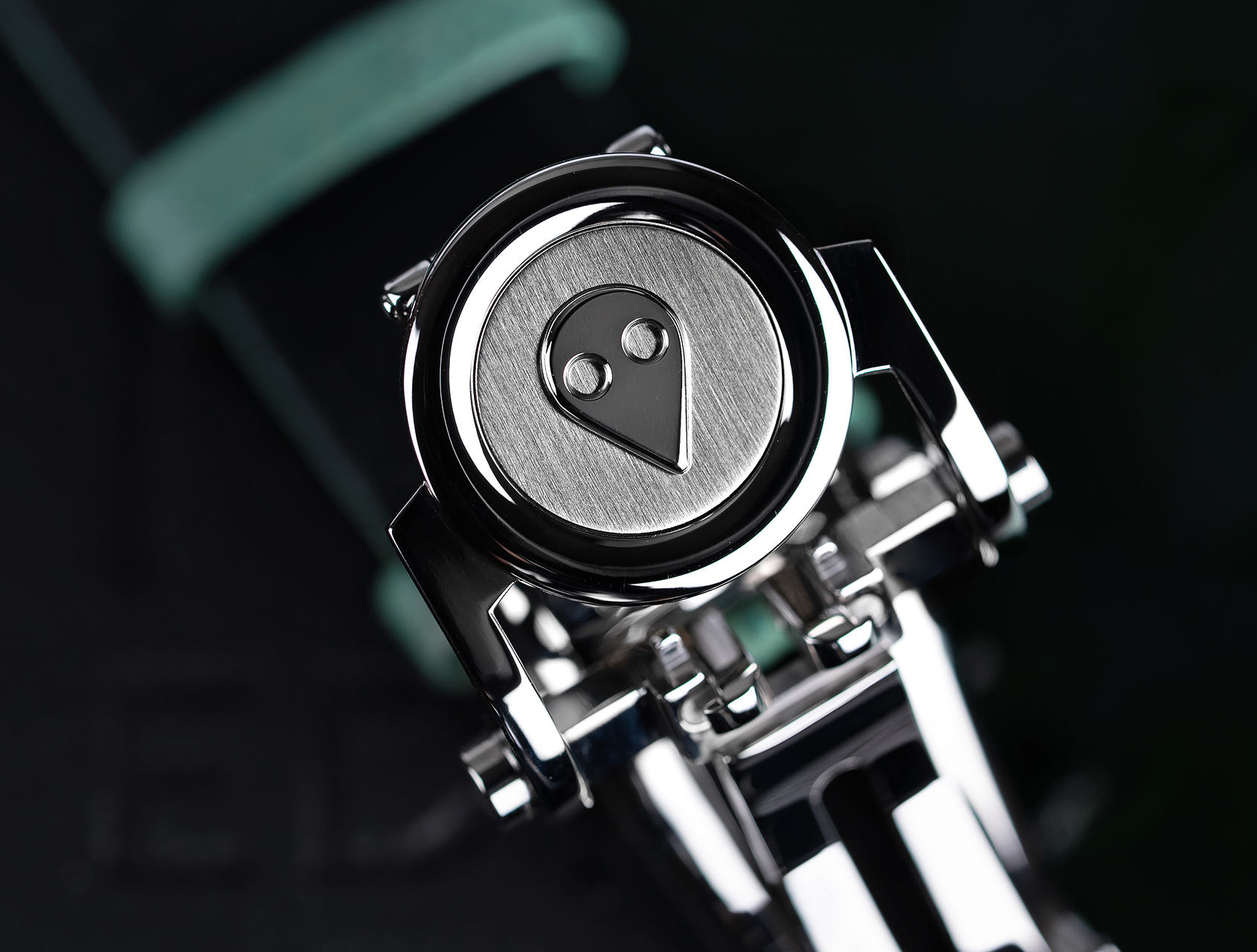 Hours and minutes are indicated by twin rotating discs inspired by DJ's turntables, each capped with a bold drop-shaped marker, a nod to MB&F’s mechanical art pieces. Around the periphery, a luminous dot track brings the dial alive at night, emphasising the kinetic spectacle. Housed in a polished steel case and powered by the Calibre G101, the MAD 2 is as much a statement of philosophy as it is a watch: “It’s a M.A.D. world,” engraved proudly on the caseback.