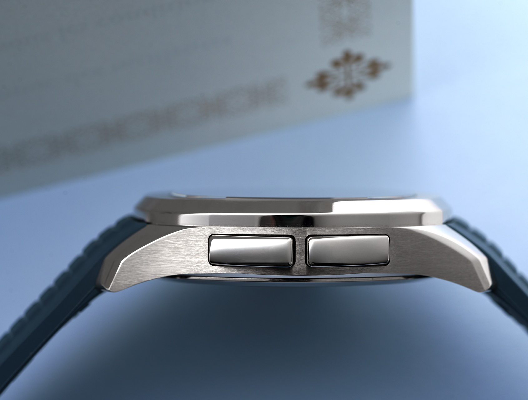 This latest Aquanaut Travel Time made its debut in a white gold 40.8mm case, embossed blue-grey opaline dial with matching tropical composite strap. Its innovative dual-time system allows the wearer to advance or regress the local (solid) hand by pressing one of the two discreet pushers on the left flank. Powered by the updated self-winding calibre 26-330 S C FUS, with 45hr power reserve. A dual-time movement with hacking seconds and Spiromax balance.