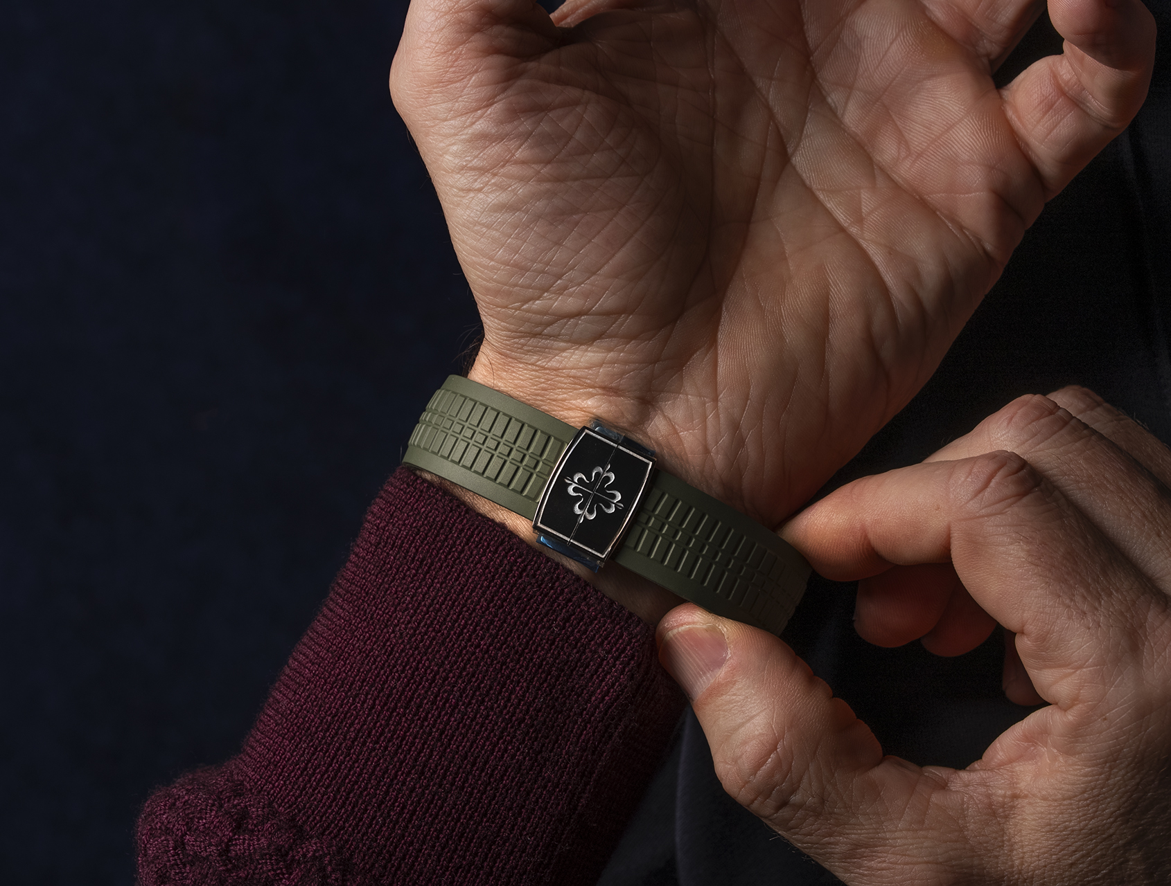 One of the only white gold ref. 5168 Aquanauts offered completely brand new & unpolished as the day it left the Patek factory in Geneva (still retaining factory stickers on the clasp).