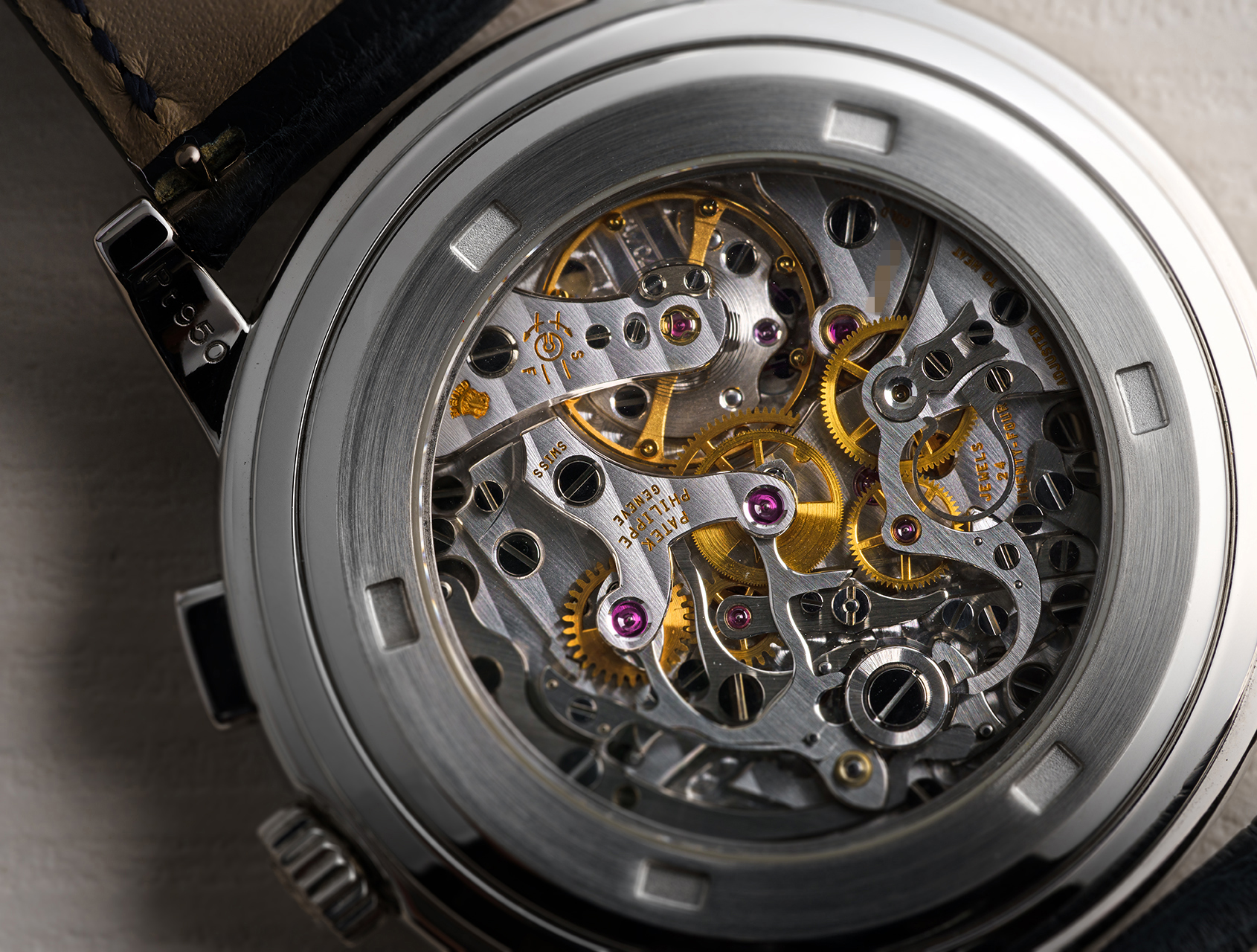 The solid platinum 42mm case is refined with stepped detailing, and the striking slate-blue dial, with blued hands and crisp white subdials, remains beautifully balanced and restrained. Displayed through its open case back is the manual-wound CH 27-70 Calibre with 60hrs power-reserve. Fitted to a new blue alligator Patek strap and fastened by its solid platinum folding clasp.