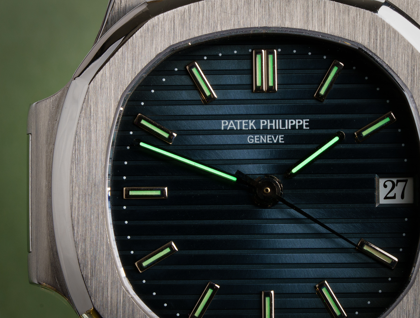 The blue sigma dial has developed an appealing warm patina across the tritium hands and matching hour markers. A truly outstanding neo-vintage Nautilus under our two-year comprehensive warranty.