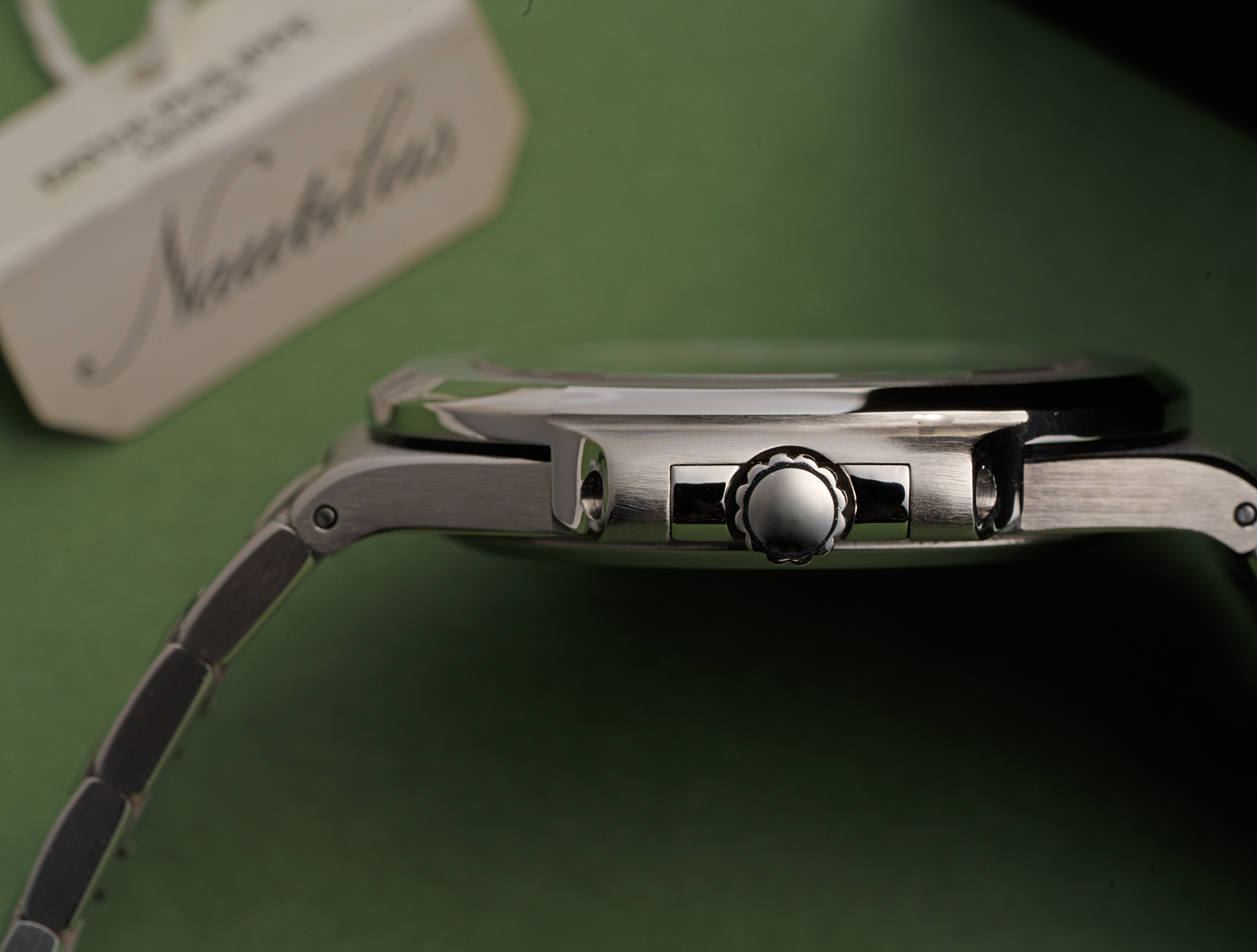 Introduced in the Autumn of 1981, and sized at 37.5mm, the medium stainless steel ref. 3800 was a more discreetly sized alternative to the larger 40mm Jumbo Nautilus ref. 3700. Both models were produced concurrently, and interestingly, the 3800 was more expensive at retail, due to its dedicated new in-house centre seconds movement, the high-frequency calibre 335 SC, designed specifically for this watch, and recognised for its precision and reliability.