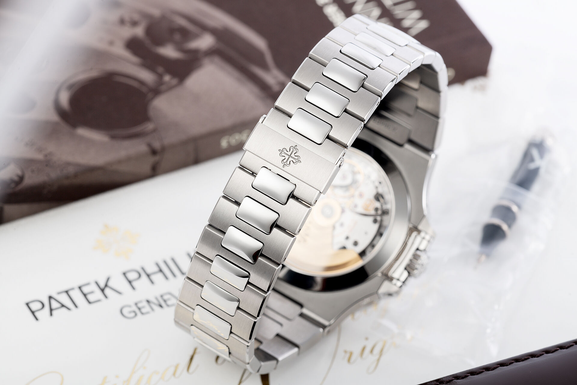 Totally brand new (retailed in June 2020) with full 2 year Patek Philippe warranty, and complete with Patek polished wood box, full length bracelet, setting stylus, instruction booklets and Patek certificate. The exquisite, horizontally embossed dial, is the same shade of blue as in the original 1976 Jumbo ref. 3700, but that's about where the similarities end. This is no simple timepiece, it's a true complication; a self-winding annual calendar with moonphase, day, date, month display and 24hr indicator. The real feat is how expertly this is all packaged in such a perfectly balanced dial... no wonder this is one of the most sough-after watches in the world!