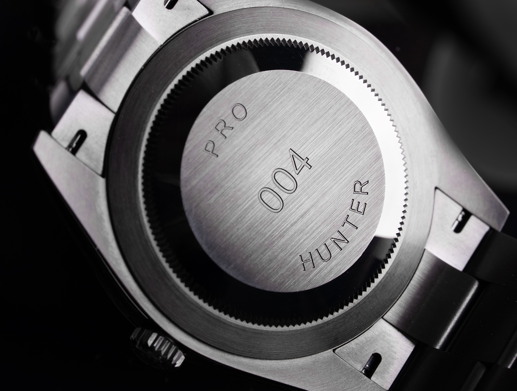 Treated with their robust signature black diamond like carbon (DLC) coating, fluo-red Pro Hunter moniker on the black sunray finished dial, and red-tipped hour markers. This latest OP41 is powered by Rolex's self-winding calibre 3230, with 70-hr power reserve, waterproof to 100m and fitted to the black DLC Oyster bracelet. Guarantee for 5 years, it is presented with its Pro Hunter box, booklets, Rolex warranty card, additional black NATO strap, link pouch, and 5-Year Pro Hunter warranty card.