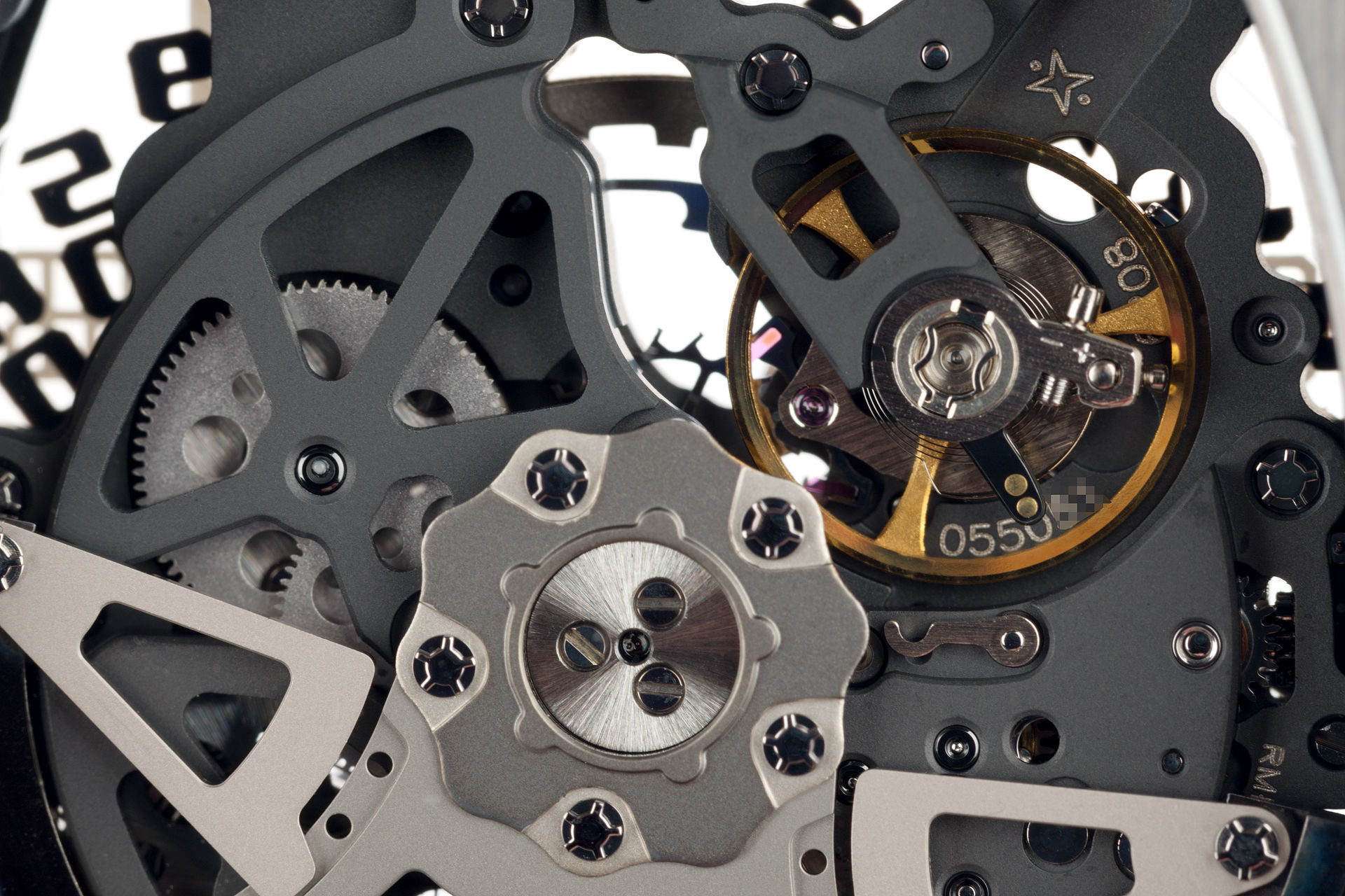 The Titanium RM010 currently retails at £65,500... The most technically innovative watch brand in the world. This RM010 is the perfect introduction to the brand, what appears to be a simple automatic watch is actually a real feat of engineering with its ground breaking RM005-S movement. With base-plates in blackened grade 2 titanium, ceramic ball bearings, unique variable geometry rotor and specially designed, long-life titanium spline screws, the RM010's 'engine' really is appropriate for a 'racing machine on the wrist'. Our watch, in superb condition, is fitted to a brand new black rubber strap with titanium folding clasp, and comes complete with its original Richard Mille stamped warranty certificate that is hand signed by Richard himself!