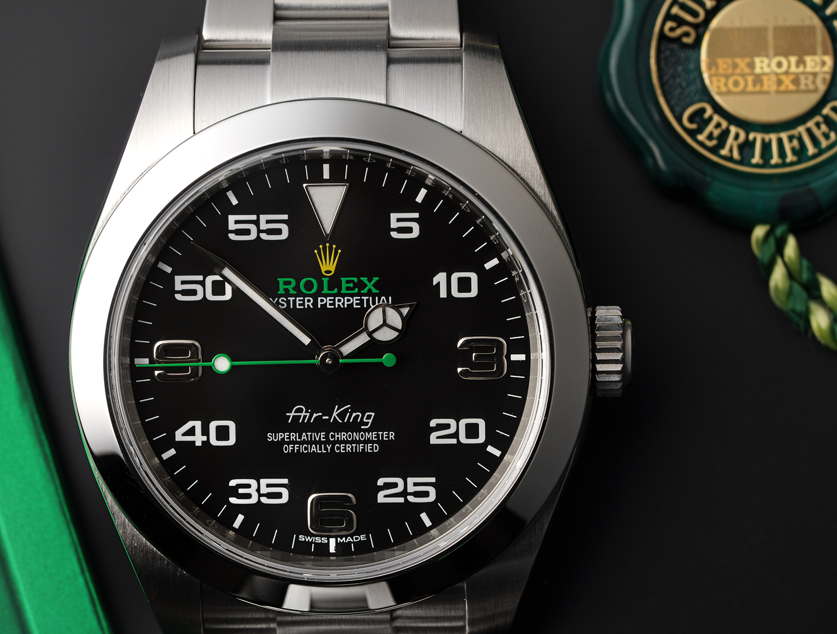 Rolex self-winding calibre 3131, waterproof to 100m & fitted to its sporty, all-matte Oyster bracelet. Presented with its Rolex box, booklets, Air-King instructions, both swing-tags & latest Rolex international warranty card dated Sep 2020. Covered by our 2-year warranty.