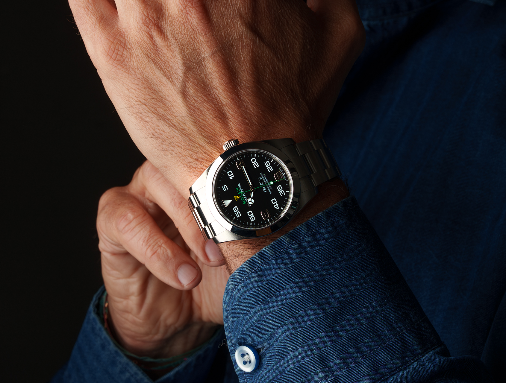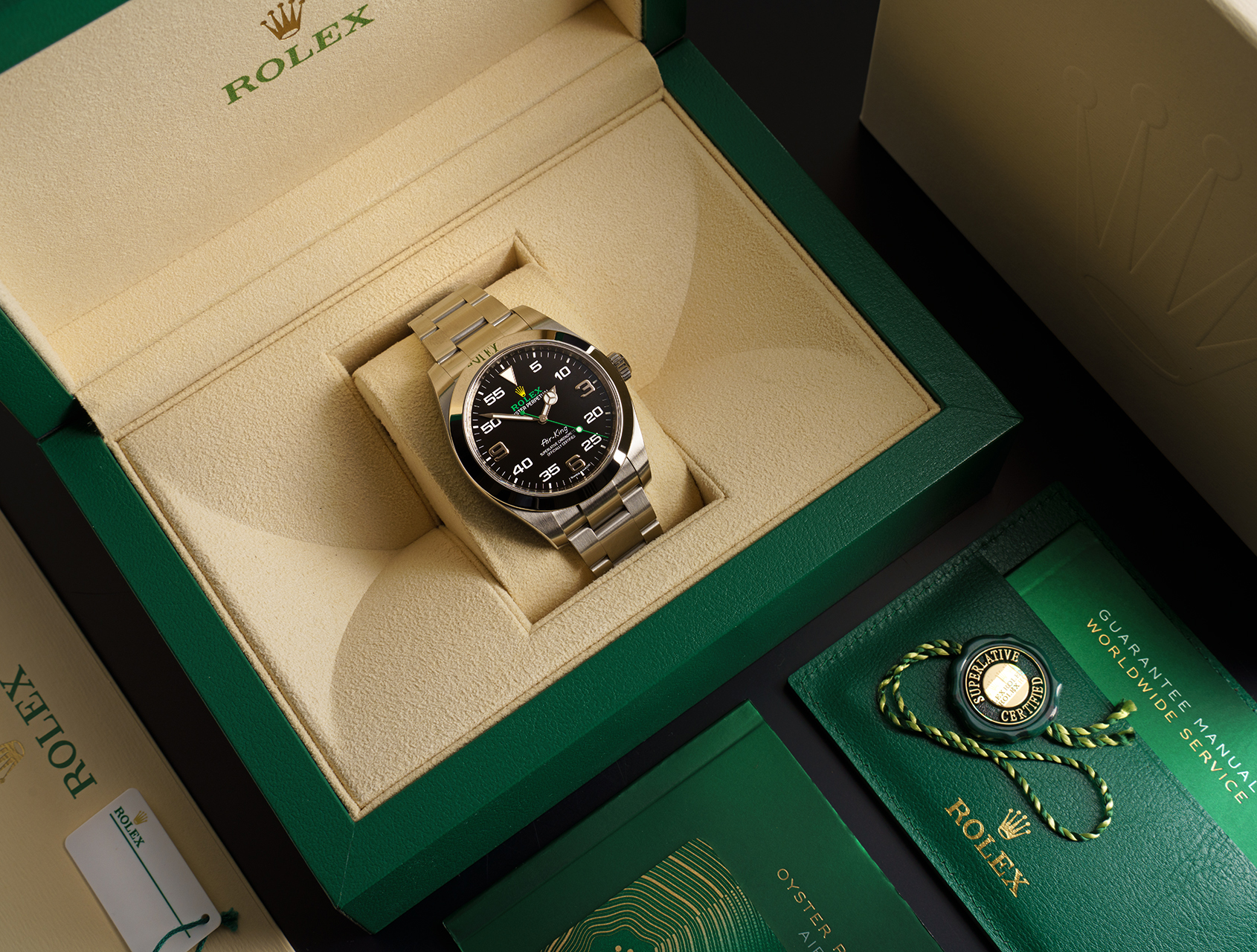 This sporty 40mm Air-King (ref. 116900) is part of the discontinued ‘pre–crown-guard’ generation, featuring the distinctive tricolour dial, made solely for this reference.