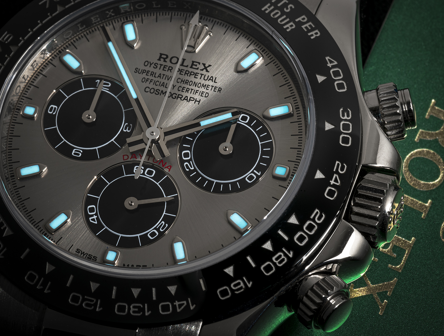 Officially discontinued in March last year and now impossible to obtain new from Rolex, this is only our third 18ct white gold Daytona ref. 116519LN in the last 3 years sporting the coveted Ghost dial.
