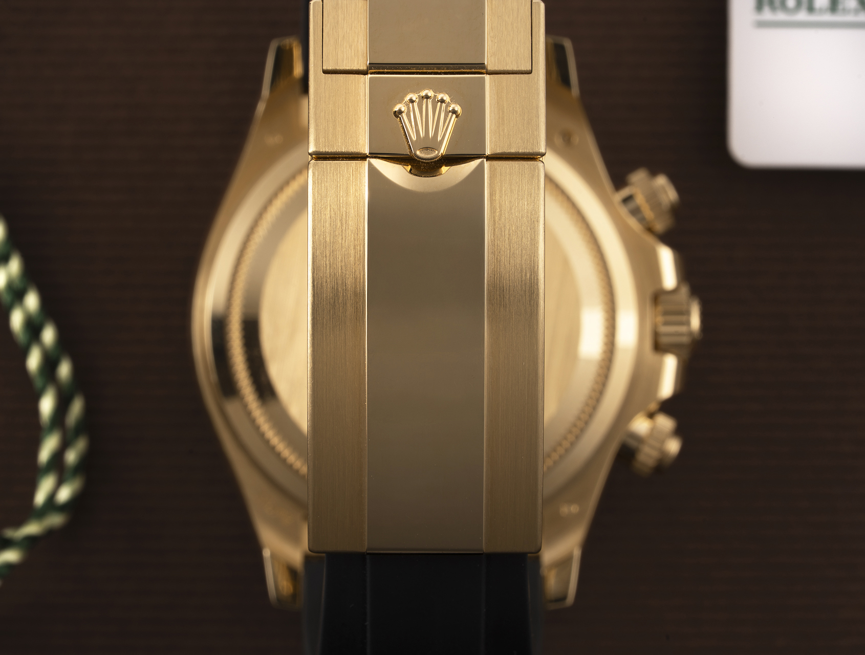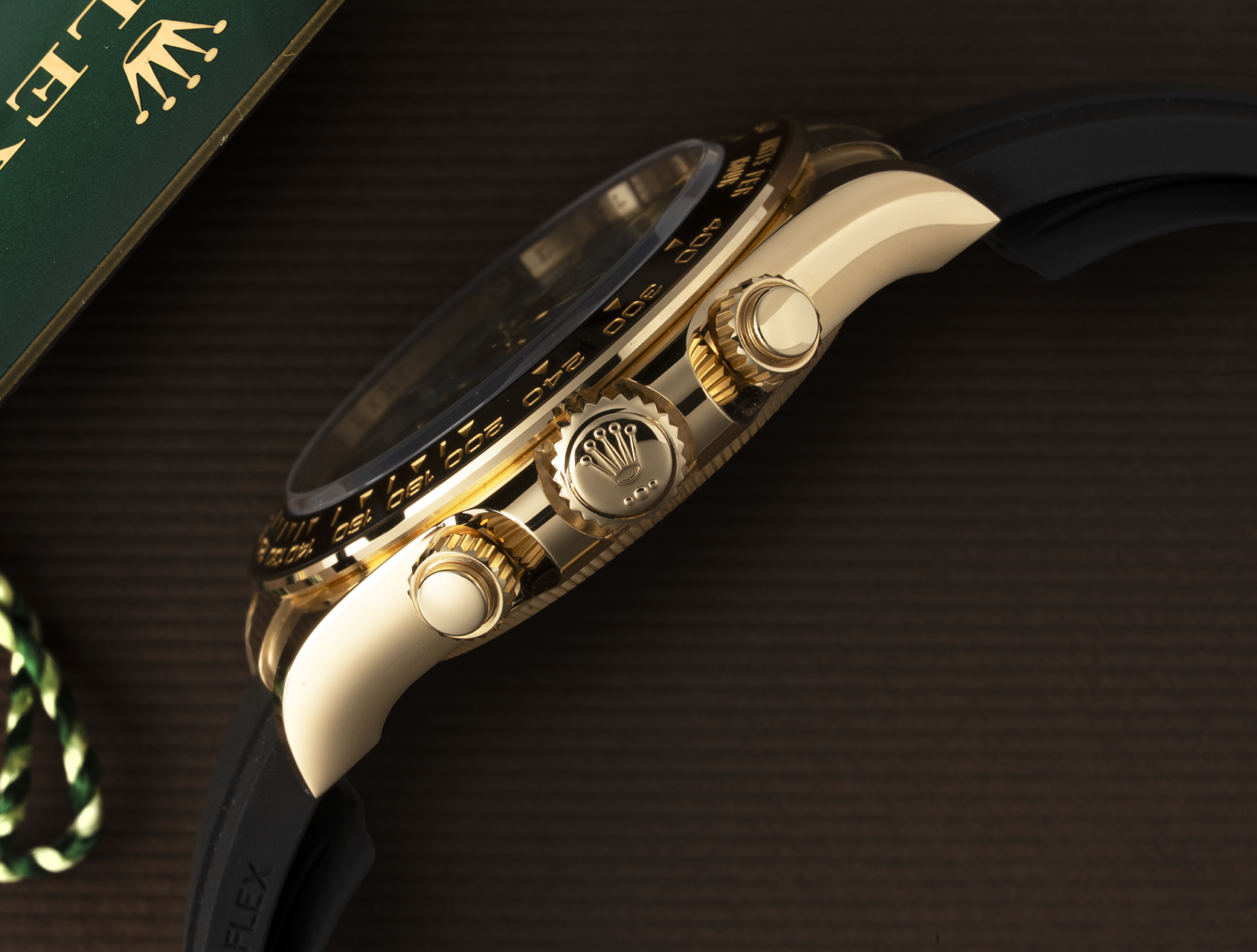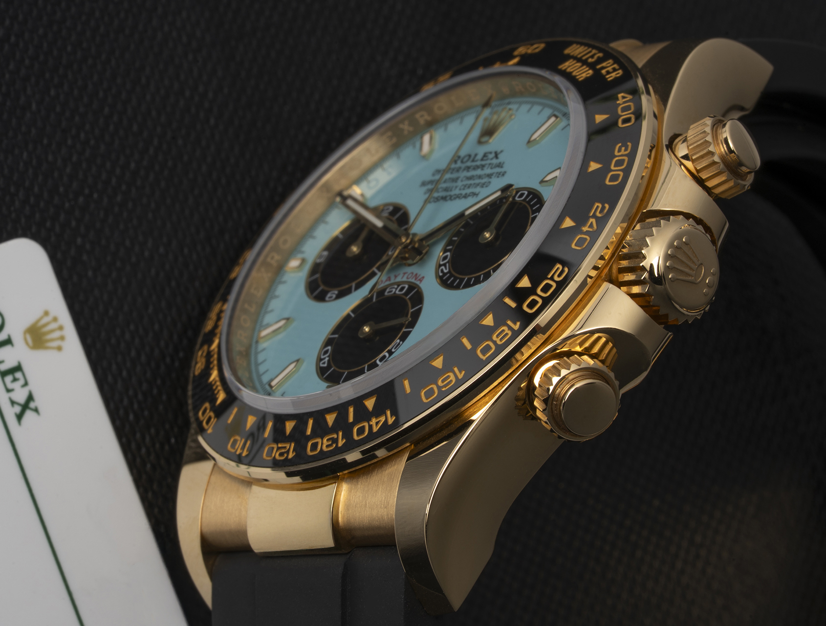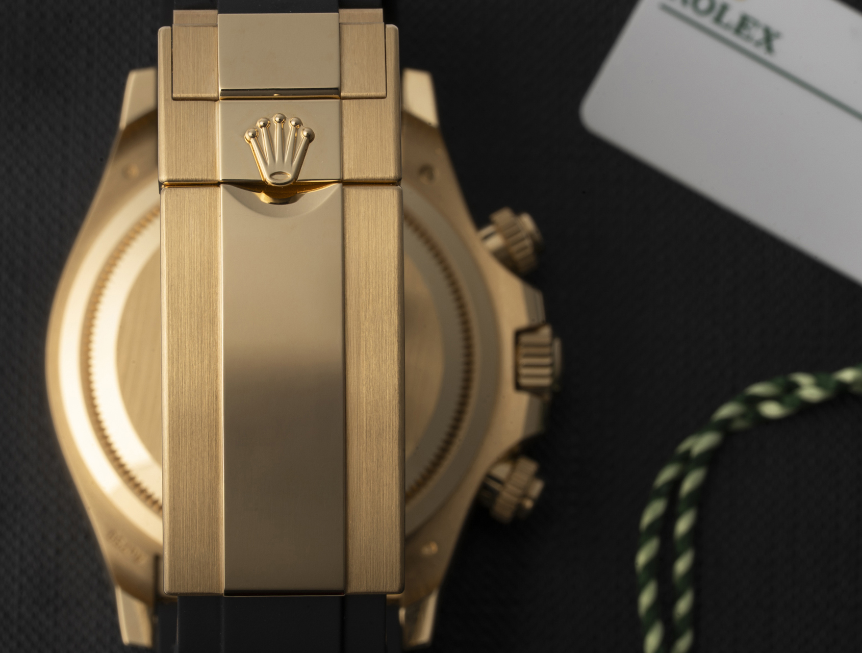Powered by Rolex's upgraded self-winding calibre 4131, waterproof to 100m and fitted to the sporty Oysterflex rubber bracelet, secured by its solid gold clasp with Glidelock for easy adjustment. Presented with its Rolex box, booklets, Daytona instructions, both swing tags, and Rolex international warranty card.