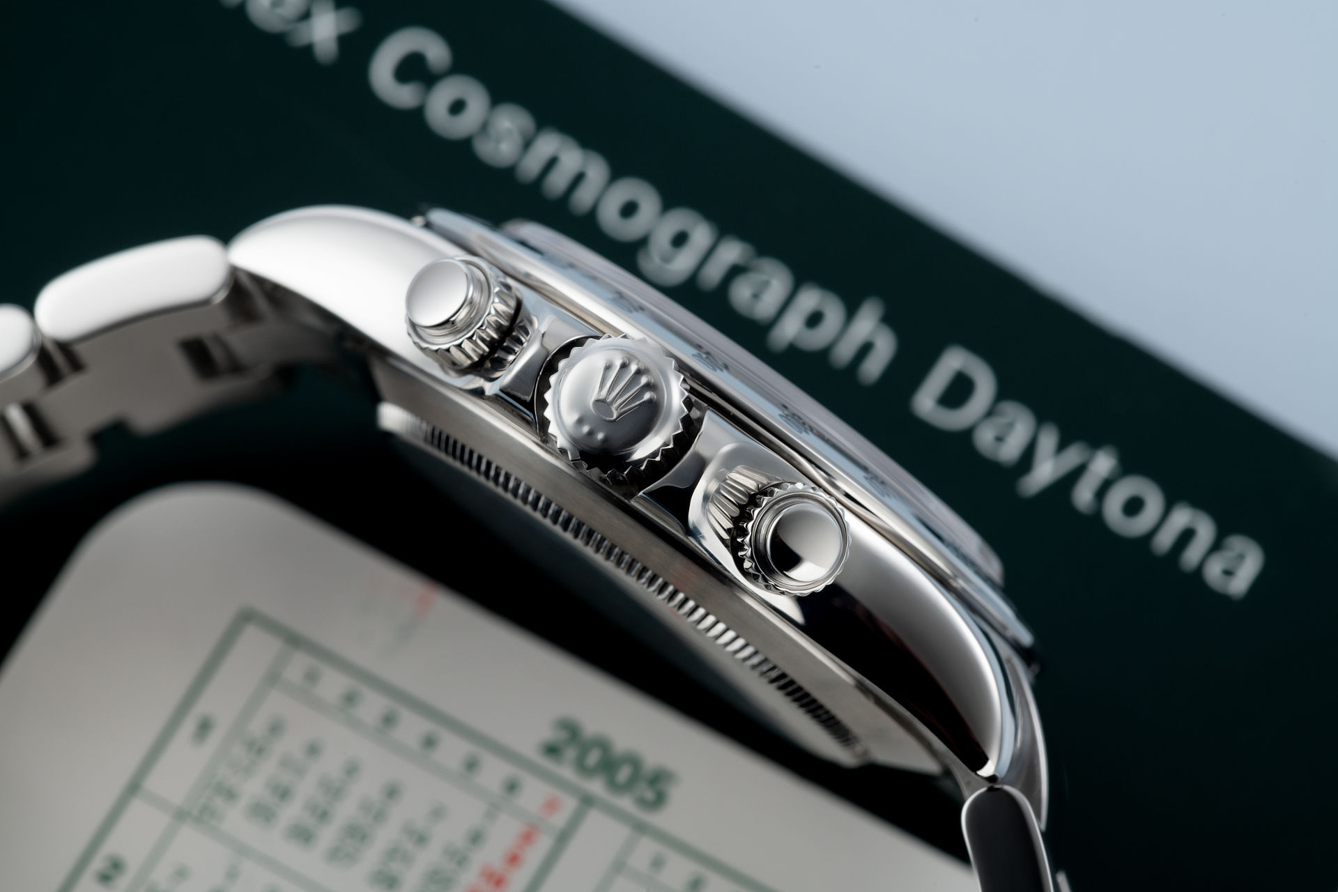 Since being discontinued in 2016, prices for these (in house calibre) 116520 Daytonas are continuing to soar. This stainless steel automatic Cosmograph features the green-glowing Super Luminova black dial and is in super 'full set' condition. Originally retailed in the UK, this fantastic investment watch is fitted to the steel '78490' Oysterlock bracelet with polished centre links, and is waterproof to 100m. Presented complete with its Rolex box, Daytona booklet, swing tags and UK stamped Rolex certificate.