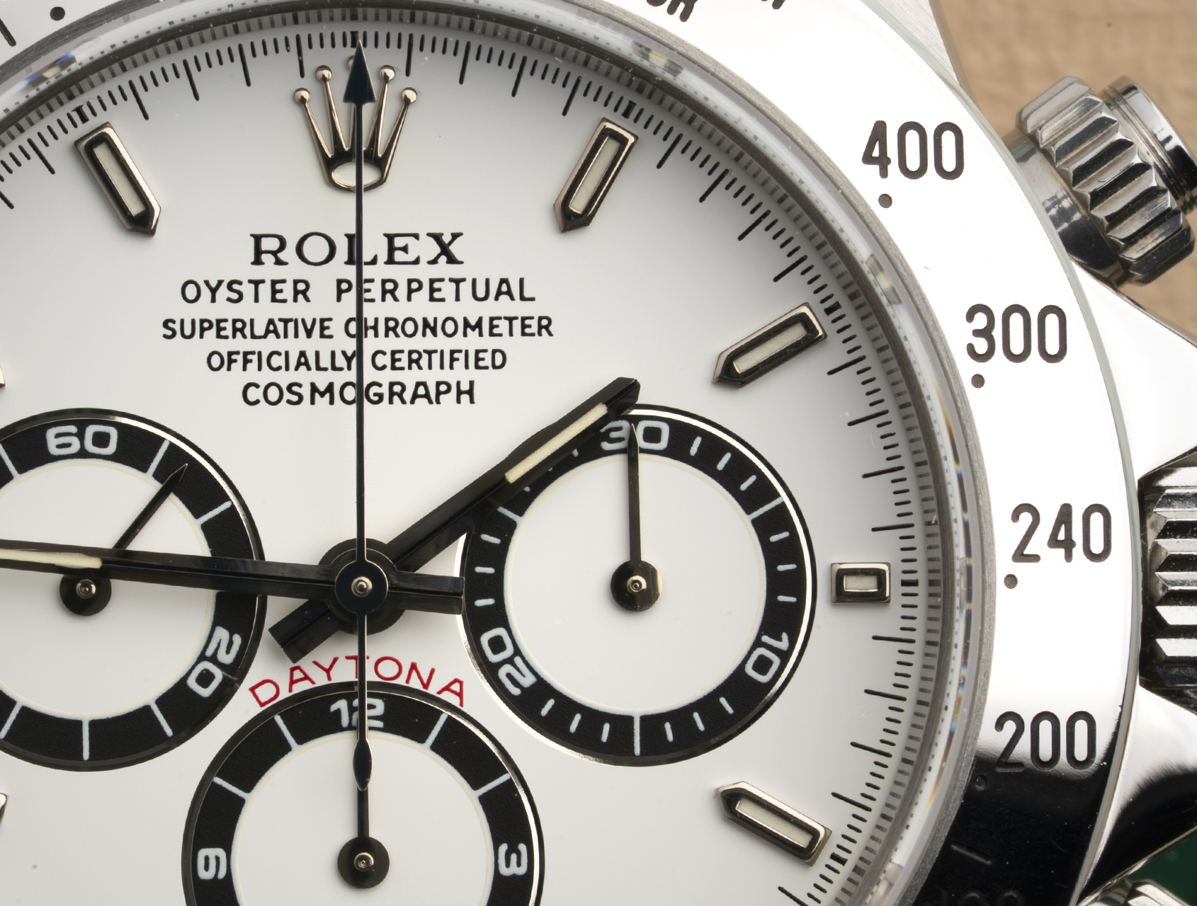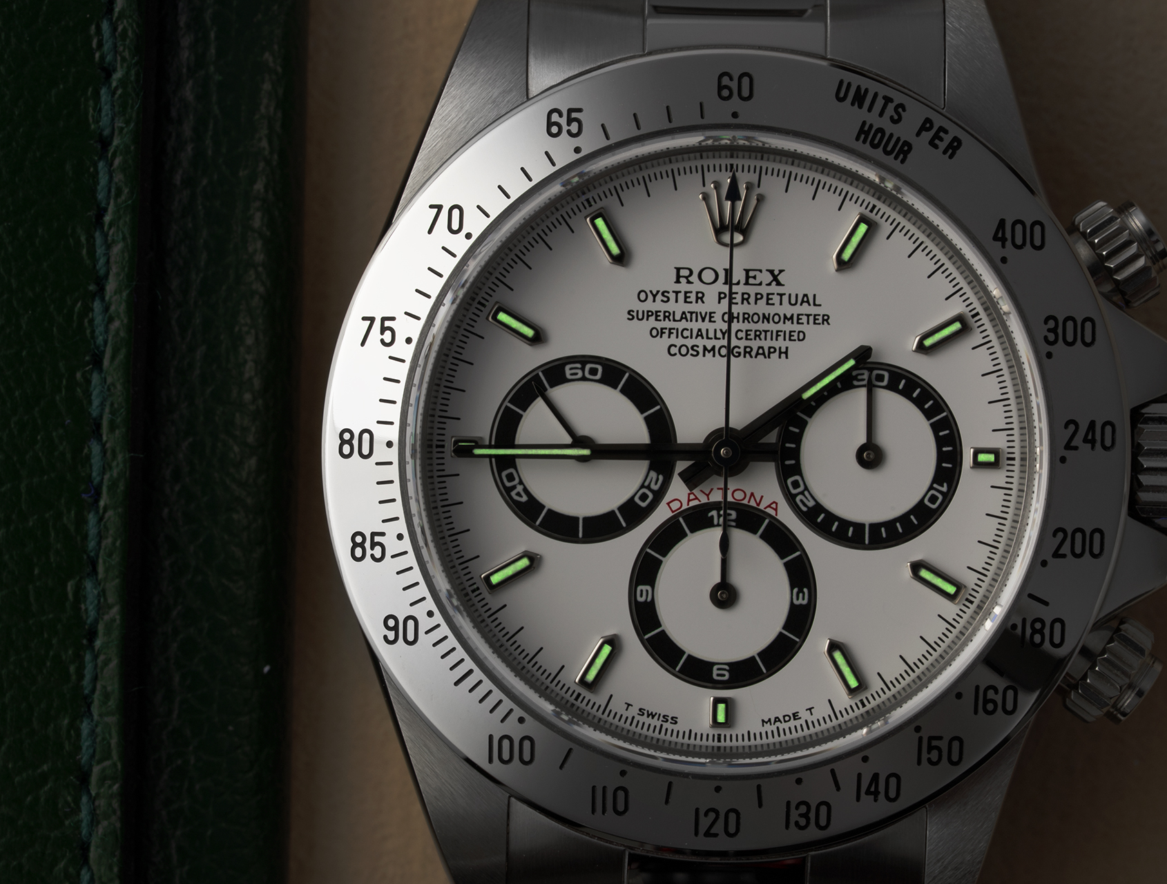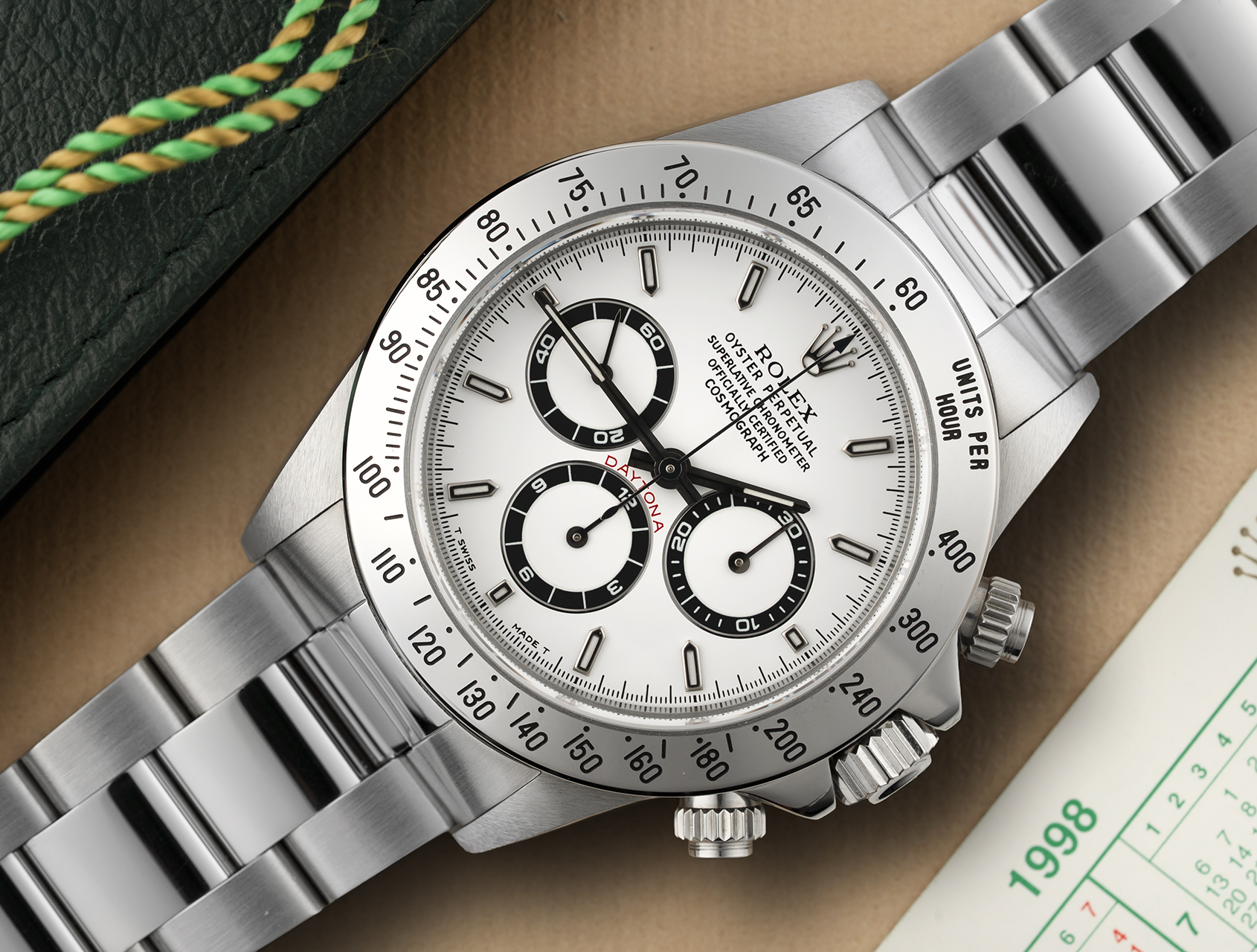 Complete with its inner/outer Rolex box, swing tag, Daytona instruction booklet, Rolex certificate & wallet, Calendar card and bezel protector.