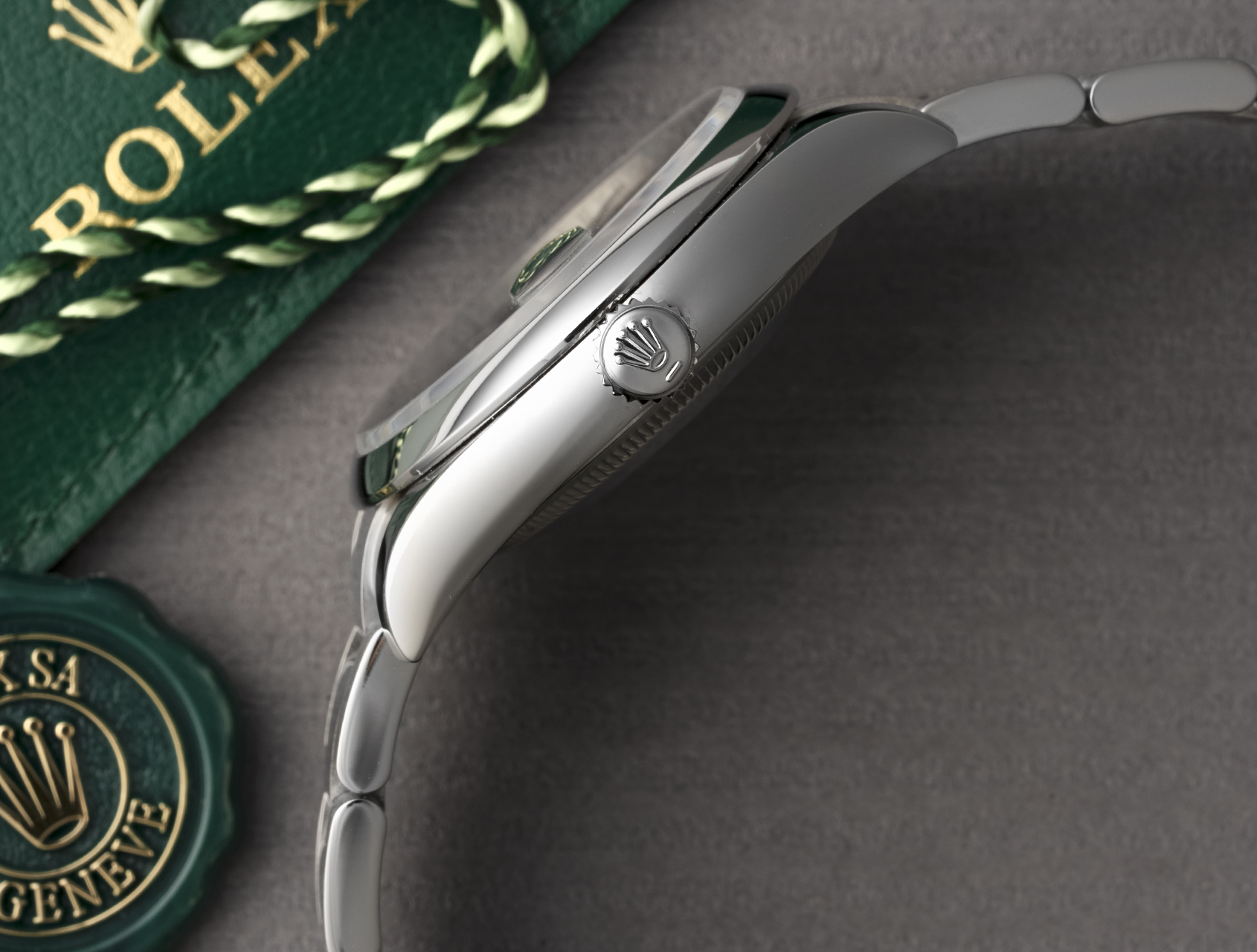 Presented as a perfect full set, with its Rolex box, booklet, Datejust instructions, both swing tags, WoS bill of sale, and Rolex warranty card dated March 2025.