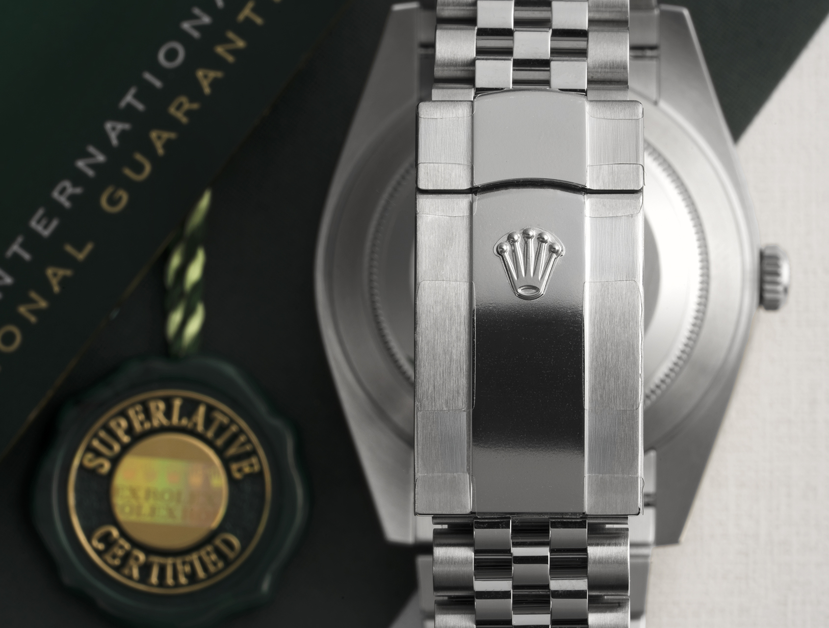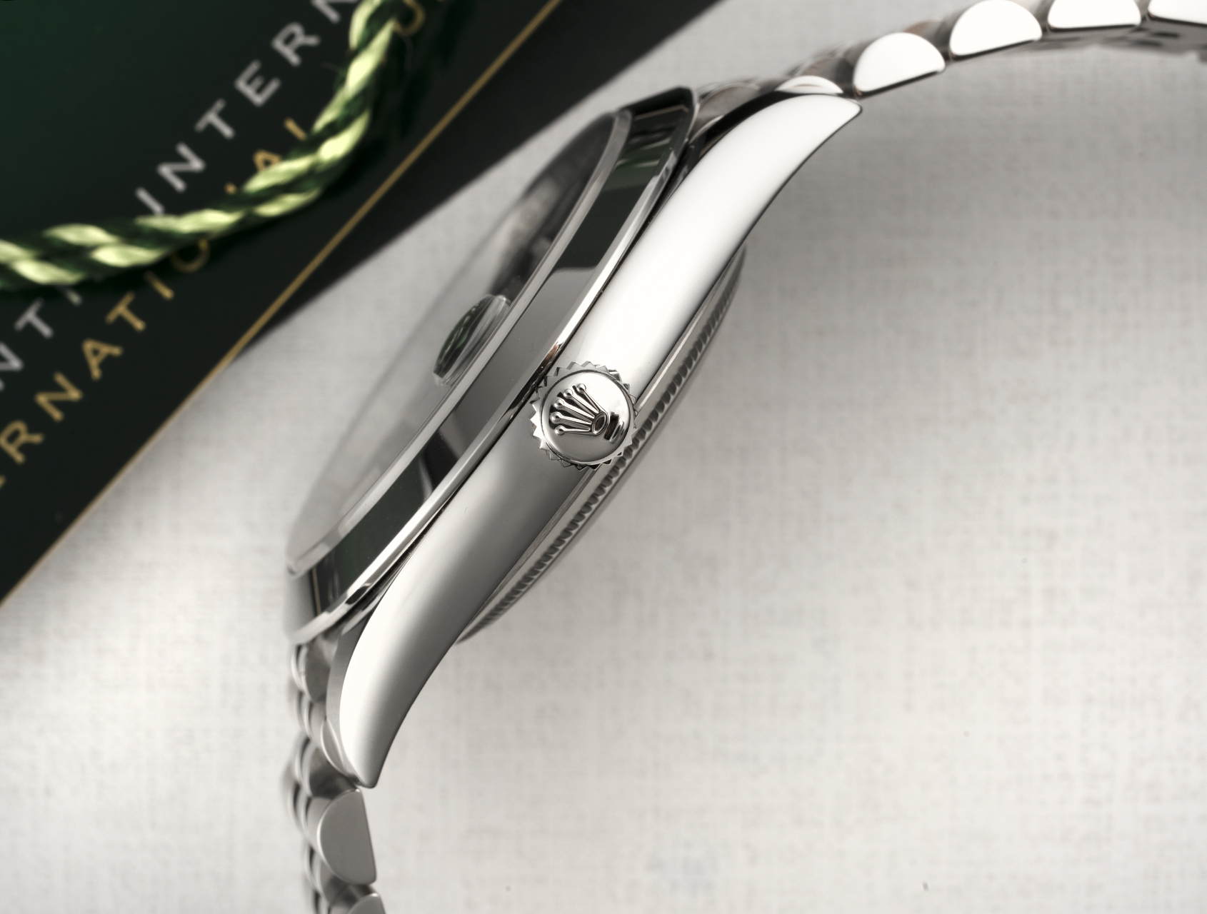 This is Rolex's latest mint green Datejust 41, fitted to the excellent Jubilee bracelet. UK retailed in October 2024, brand new condition, never worn with Rolex factory stickers still intact, and under Rolex international warranty until Oct. 2029.