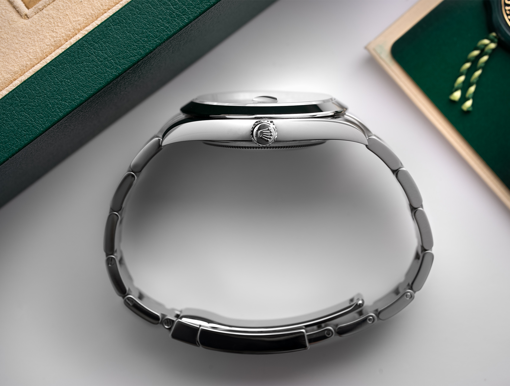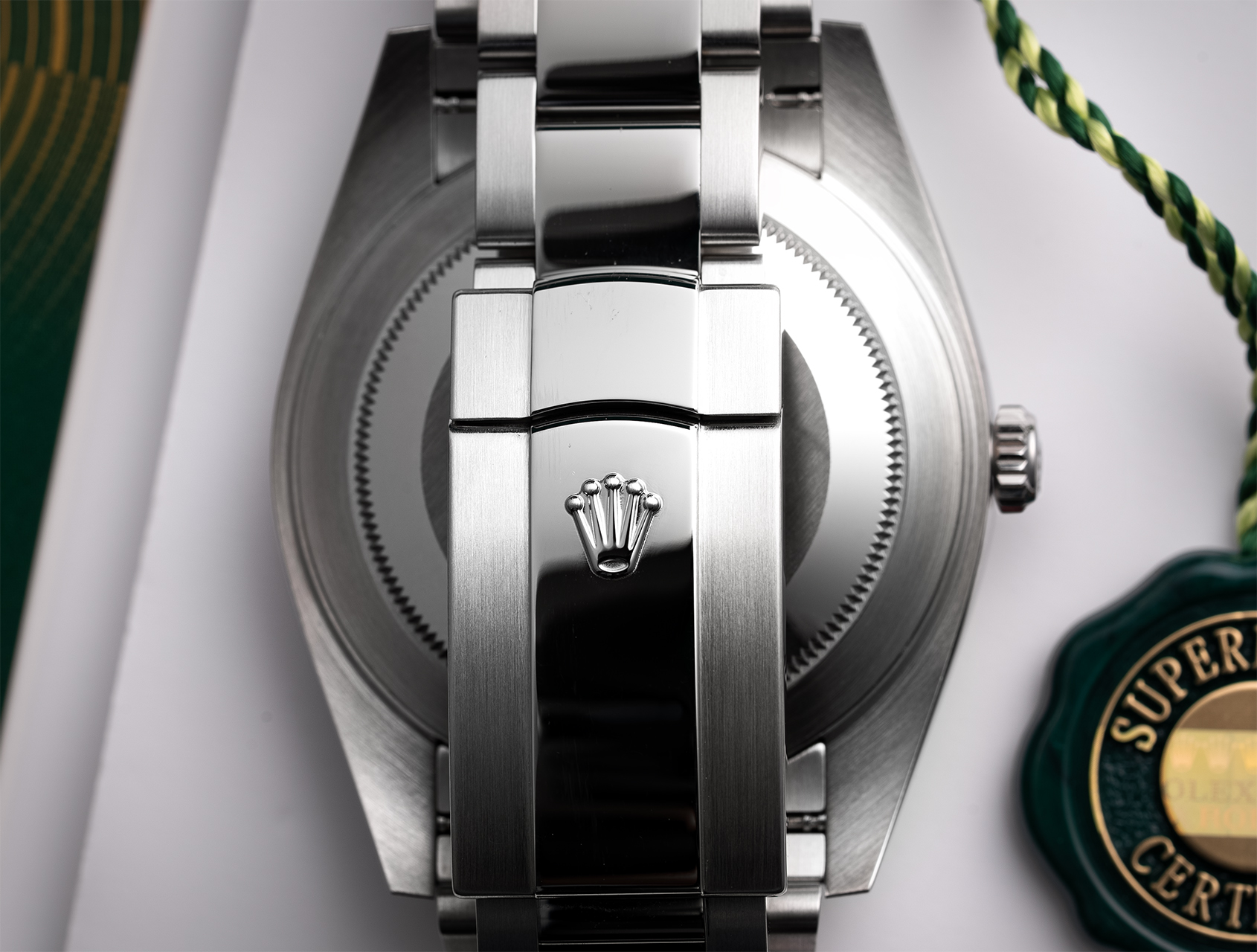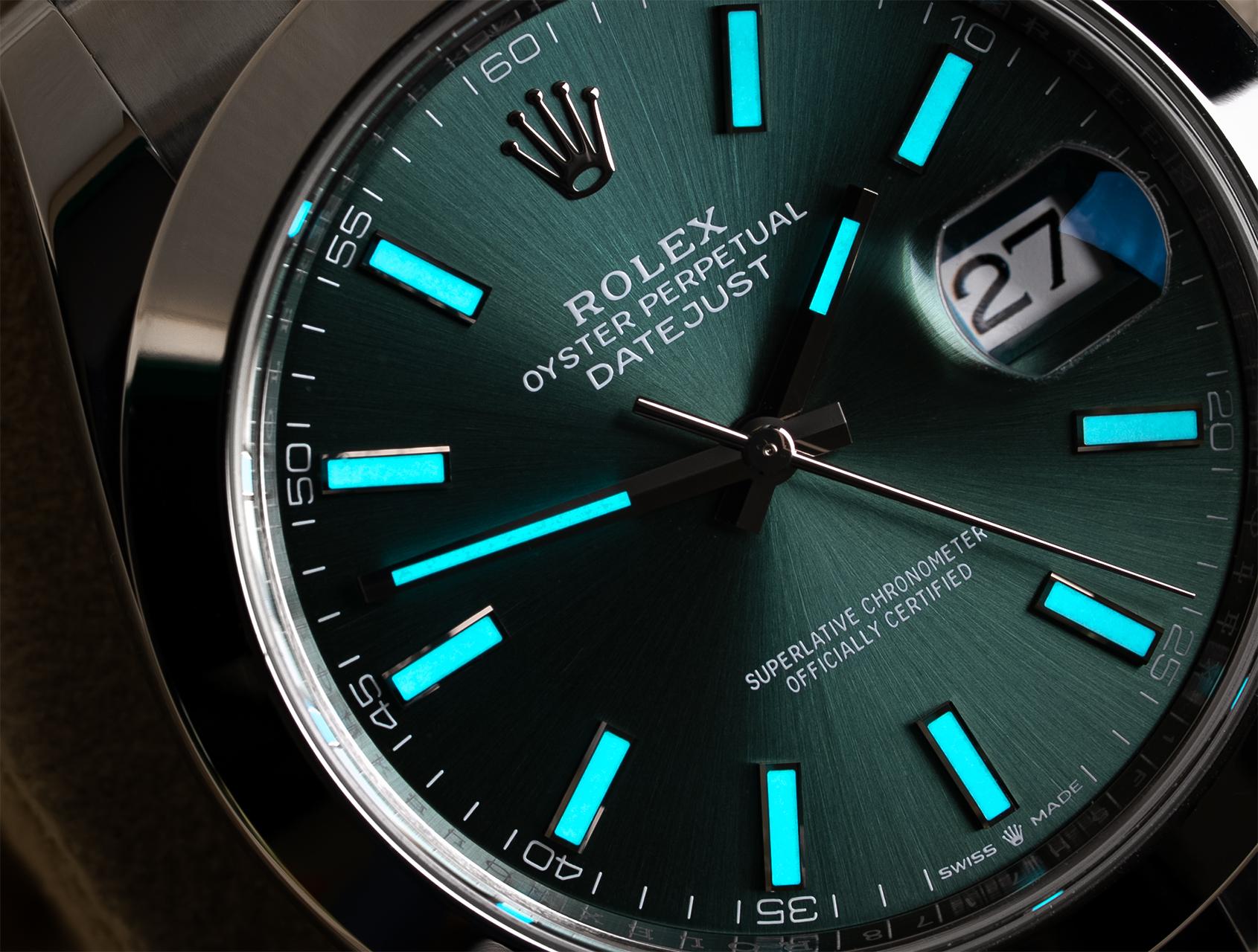 This brand new Datejust 41 (ref. 126300), with mint green sunray dial and Oyster bracelet, is the winning combination.