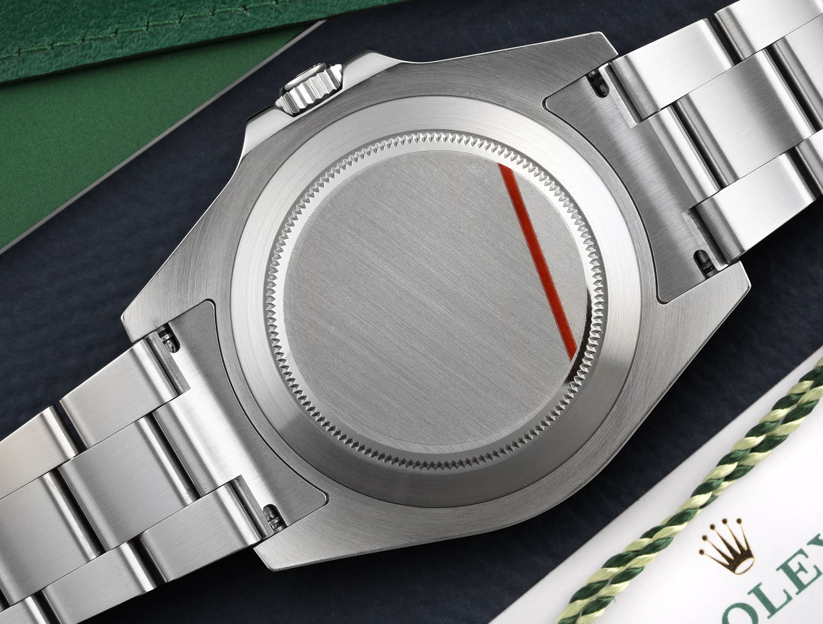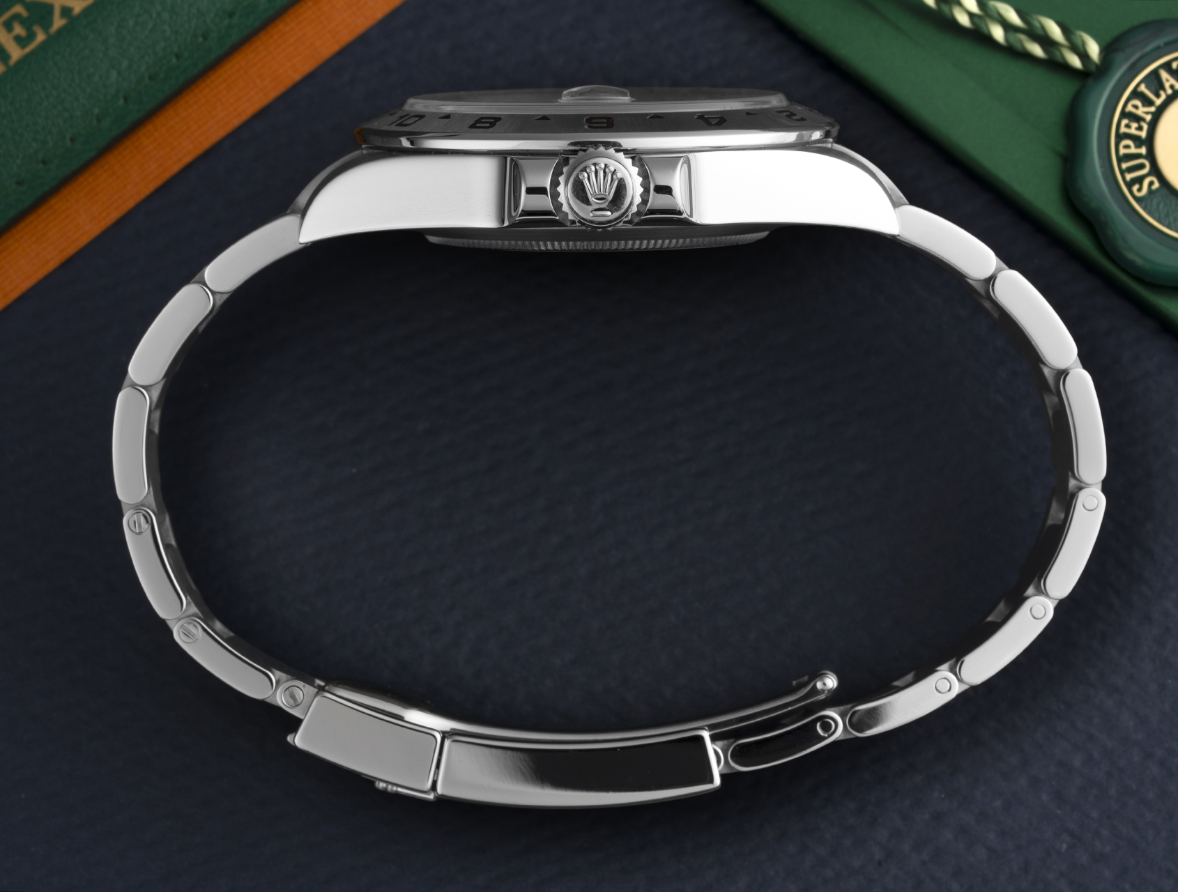 Guaranteed for two years, it's complete with its Rolex box, booklets, Explorer II instructions, green swing tag, and Rolex international warranty card dated September 2019. Powered by Rolex's self-winding calibre 3187, waterproof to 100m and fitted to the rugged Oyster bracelet, with summer/winter adjustment.