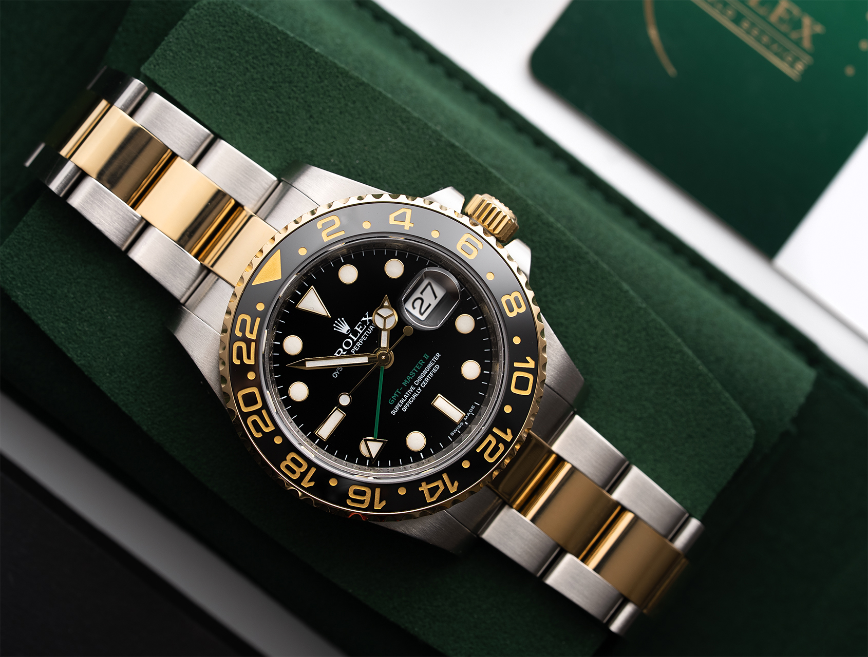 No longer in production, this beautiful two-tone GMT-Master II (ref. 116713LN) is for those who appreciate heritage and craftsmanship. First introduced in 2006, this 18ct yellow gold and steel GMT-Master II is is powered by the in-house 3186 calibre dual-time movement.