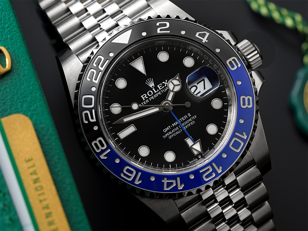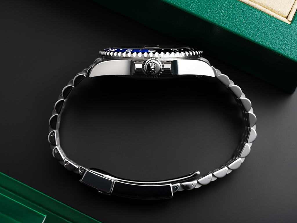 Two additional time-zones simultaneously, a scratch-resistant sapphire glass, and the gorgeous blue & black Cerachrom bezel with 24-hour graduations. Powered by Rolex's self-winding dual-time calibre 3285, waterproof to 100m and paired with the Jubilee bracelet with 5mm Easylink, for easy adjustment.