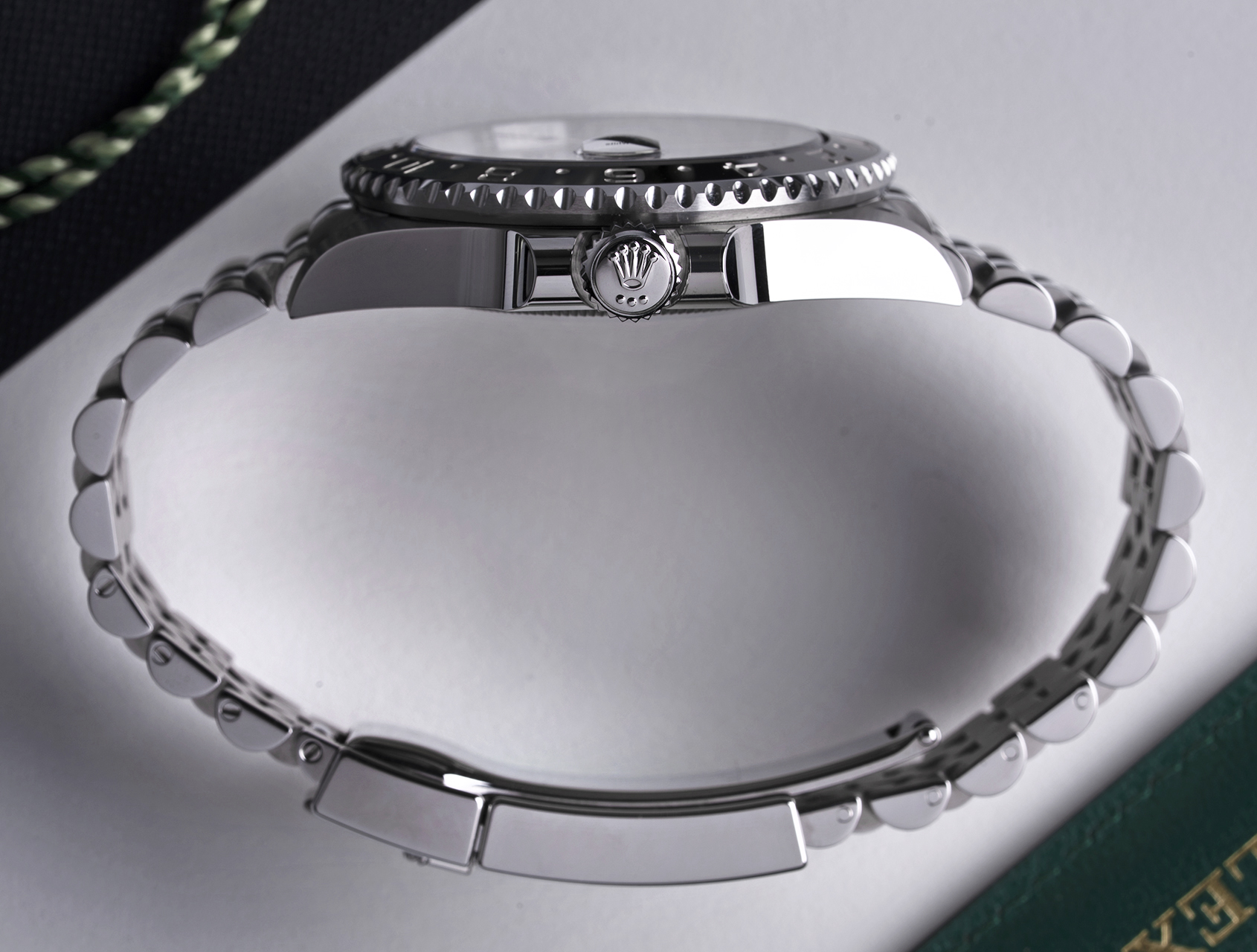 Rolex's upgraded self-winding GMT calibre 3285, with Parachrom hairspring and 70hr power–reserve, waterproof to 100m and fitted to its full length Jubilee bracelet.