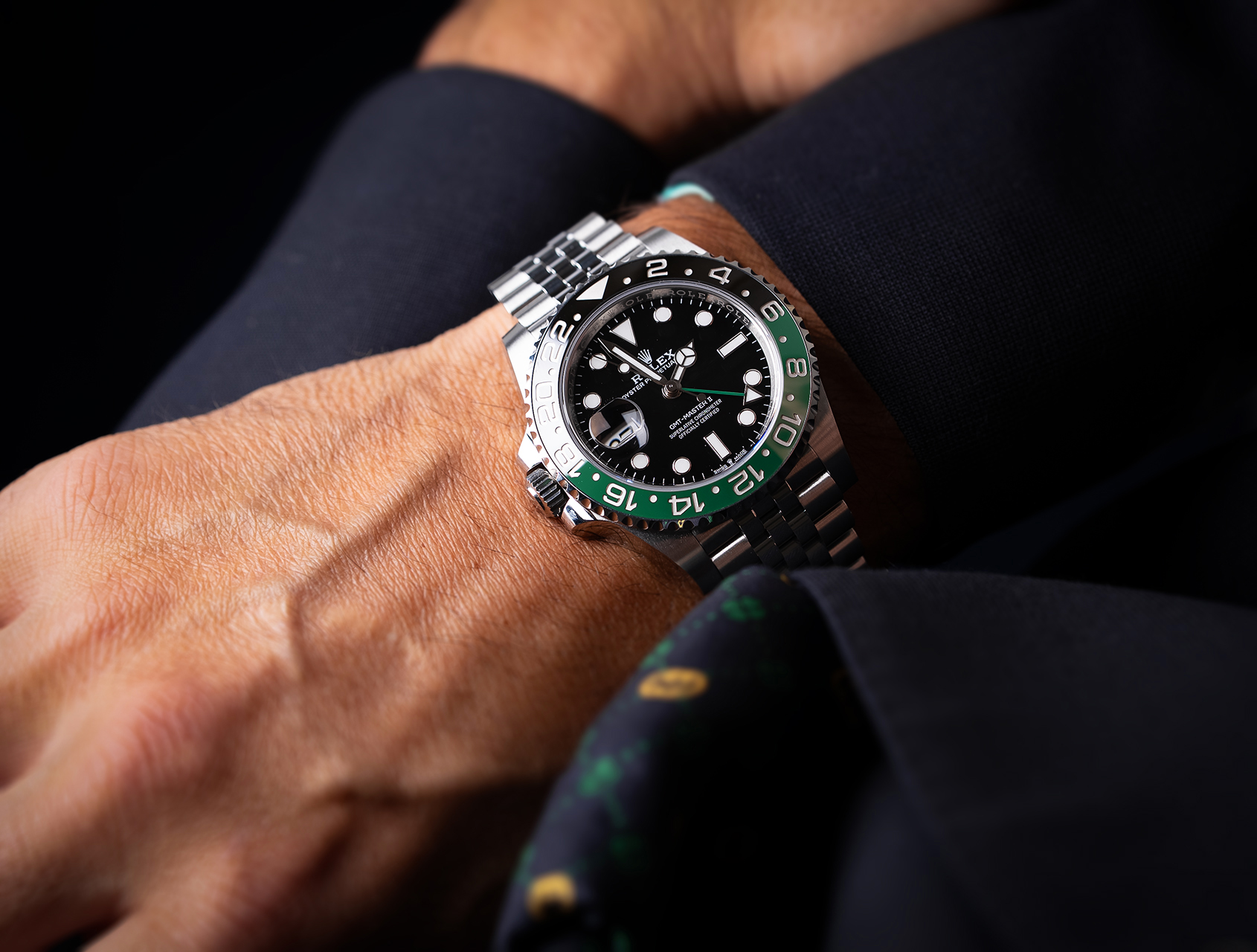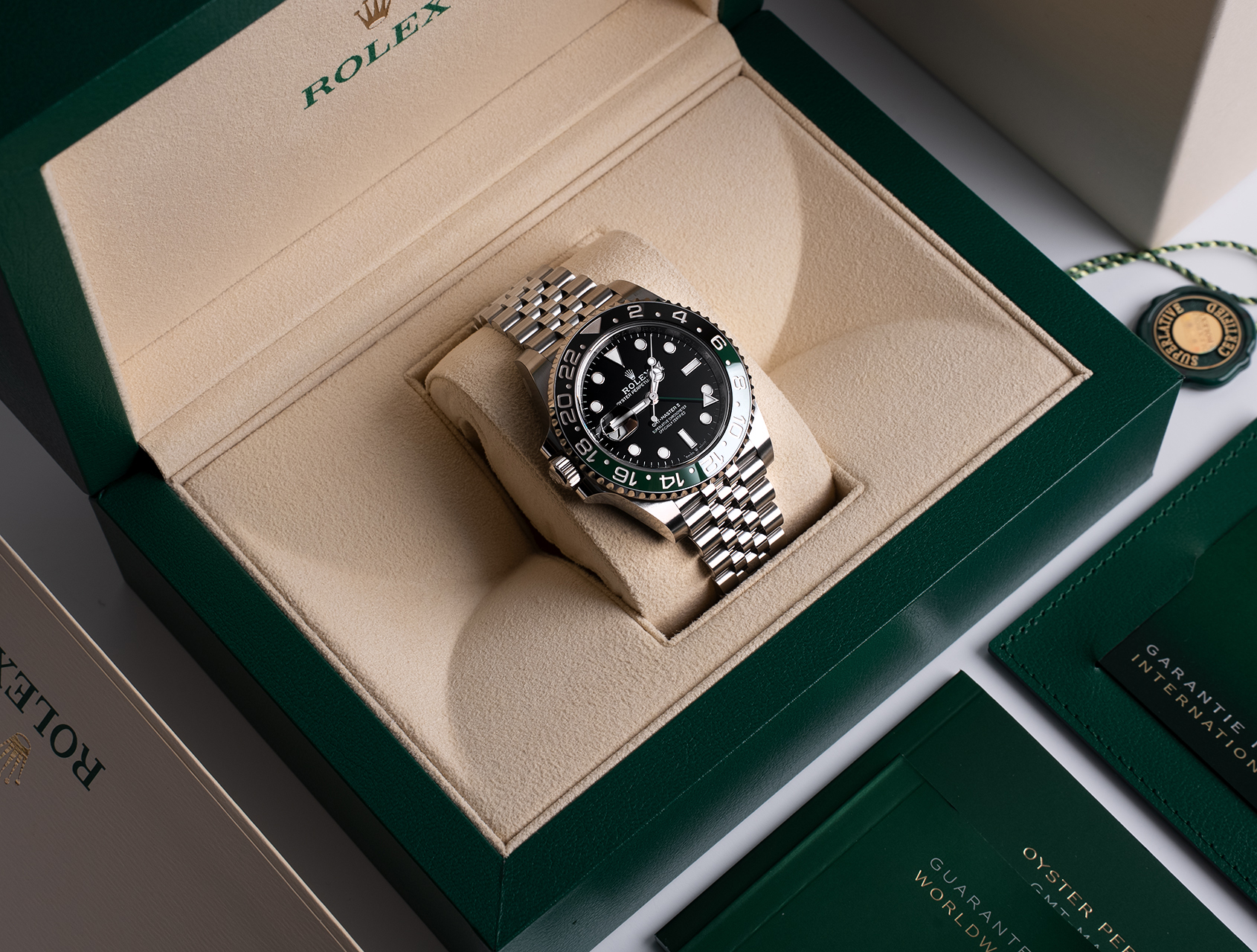 Unworn condition and still under Rolex international warranty until February 2029. This Rolex GMT-Master II (ref.126720VTNR) "Sprite" on a Jubilee bracelet pops!