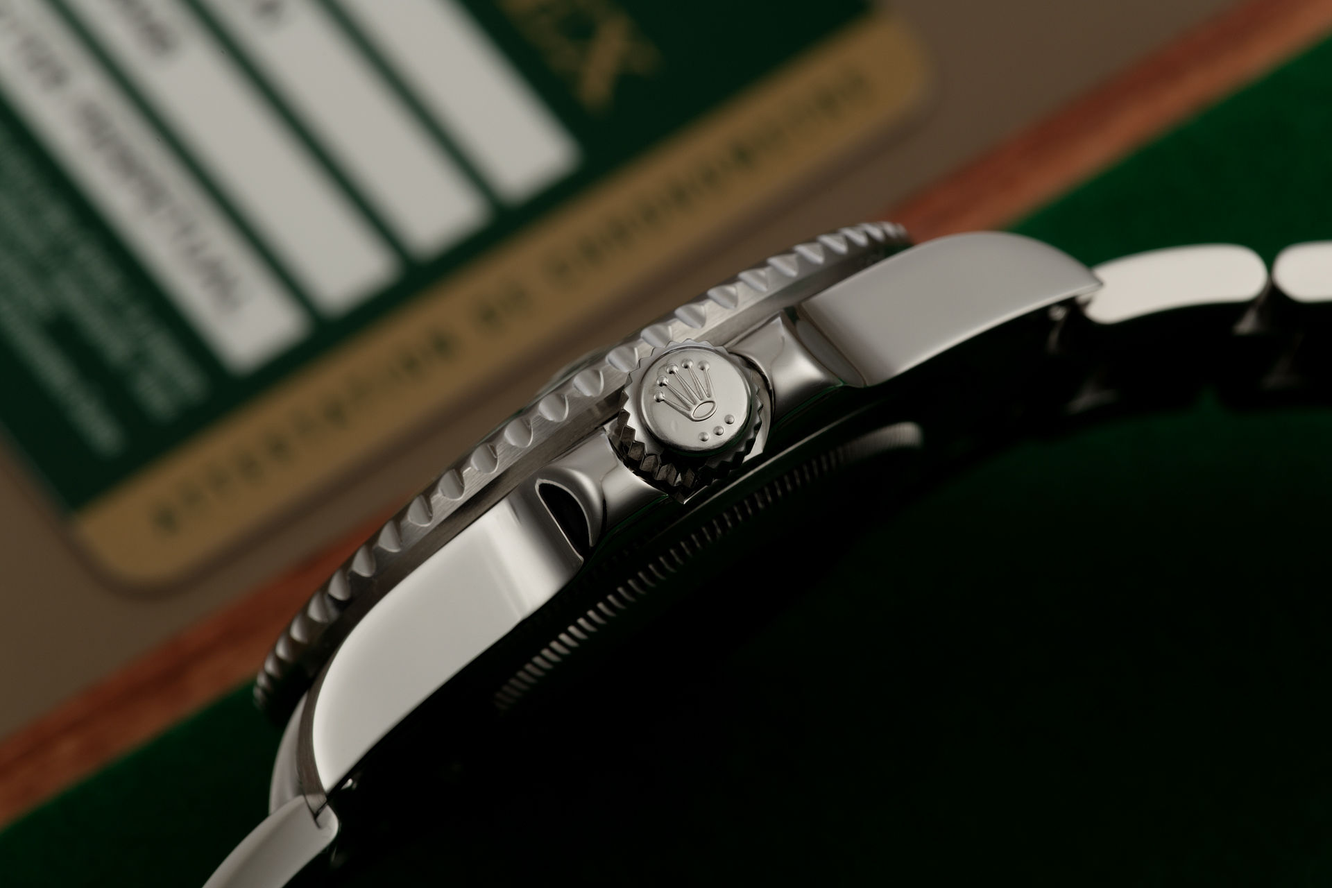 This black Cerachrom bezel 116710LN GMT-Master II is in superb condition. Originally retailed in the UK, this current model features a pre-Chromalight black dial with green Luminova glow. Powered by Rolex's superb automatic dual time movement (cal.3186) and waterproof to 100m. Complete with its Rolex box, booklet and UK stamped Rolex warranty card. 2 year Watch Club warranty.