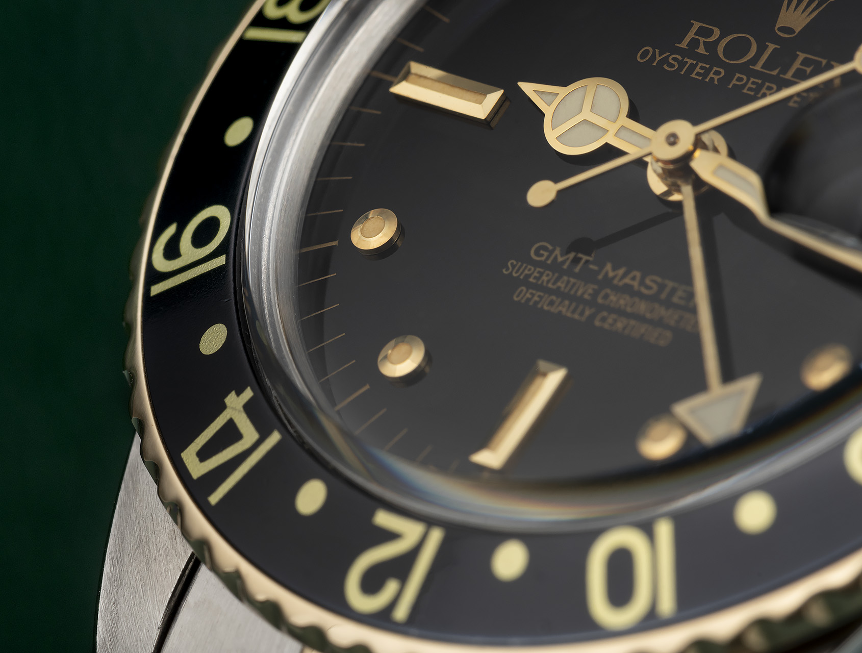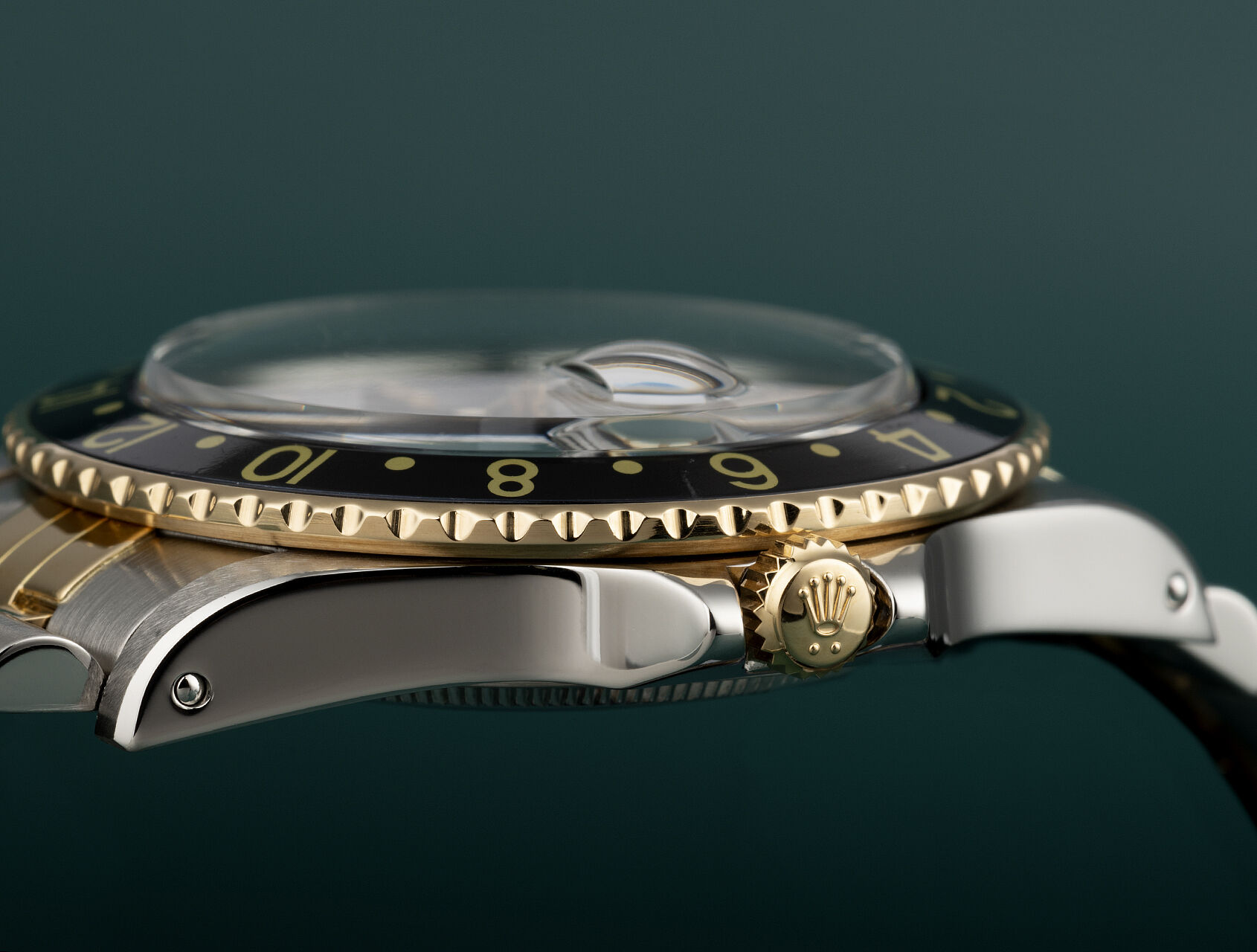 Just back from a full service at Rolex UK, this 18ct gold & steel transitional GMT ref. 16753 is under two-year Rolex international warranty to Feb 2025
