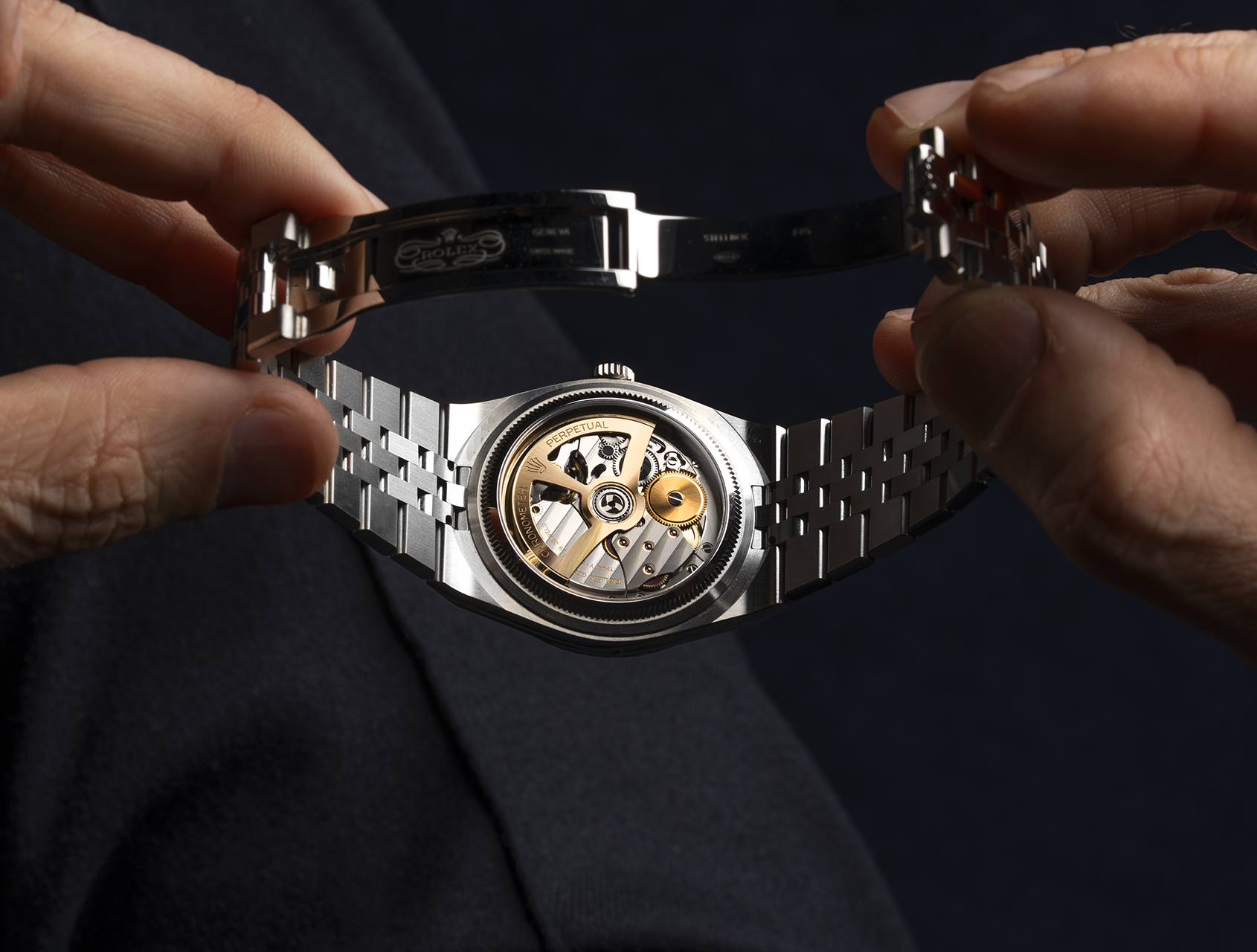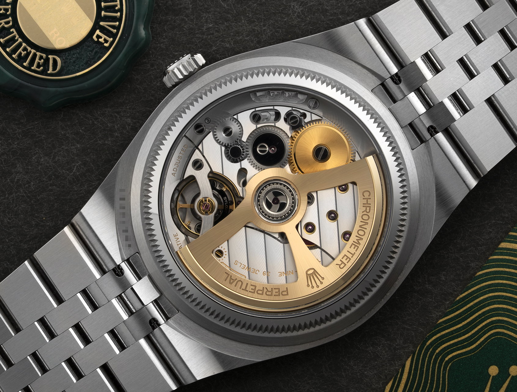In a rare move for Rolex, the all-new calibre 7135 is revealed through a sapphire crystal case back. Beating at a high-frequency 5Hz while delivering an impressive 66-hour power reserve, it introduces the innovative Dynapulse escapement - a silicon dual-wheel system designed to reduce friction and maximise efficiency, extending service intervals to over a decade.