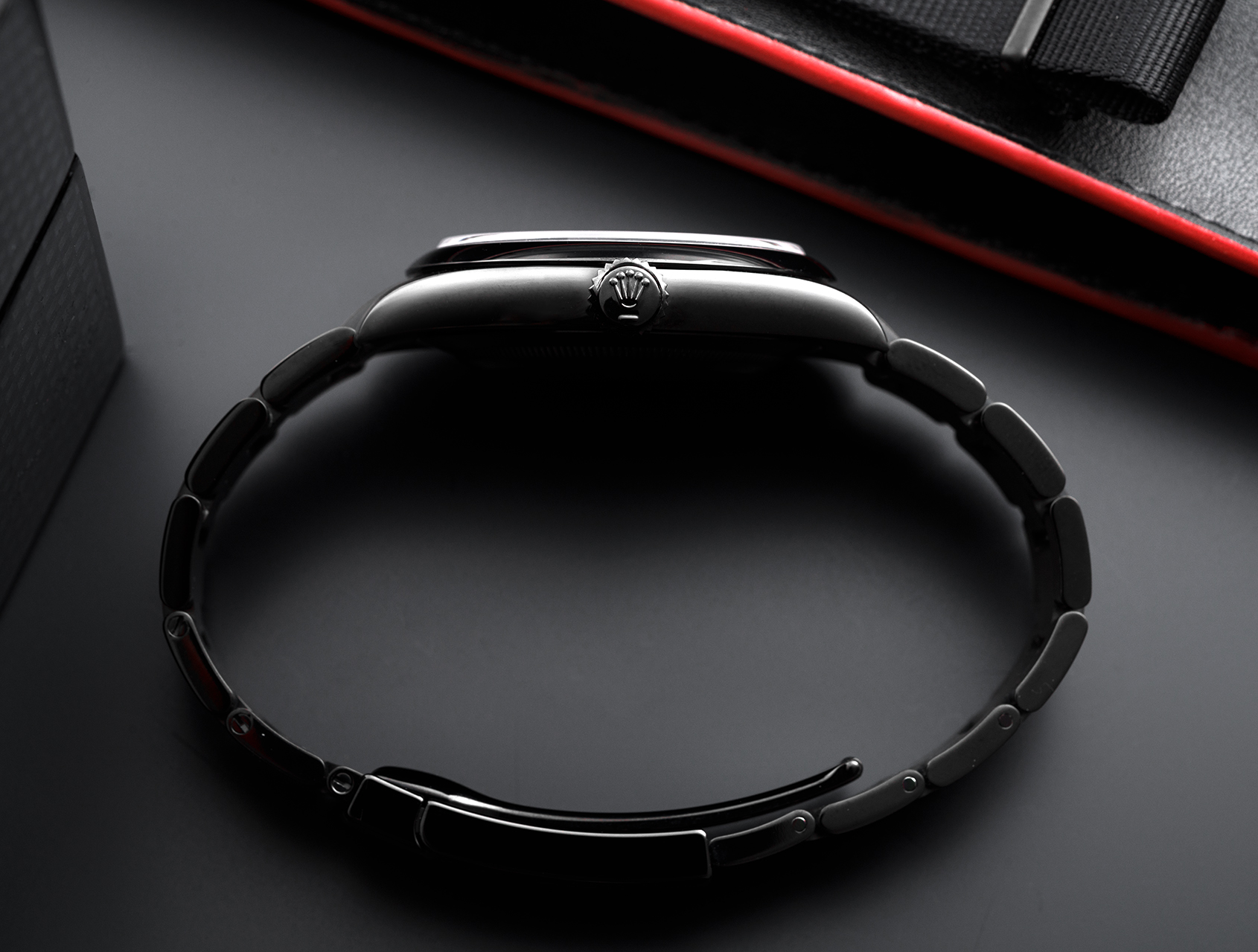 This latest OP41 is powered by Rolex's self-winding calibre 3230, with 70-hr power reserve, waterproof to 100m and fitted to the black DLC Oyster bracelet.