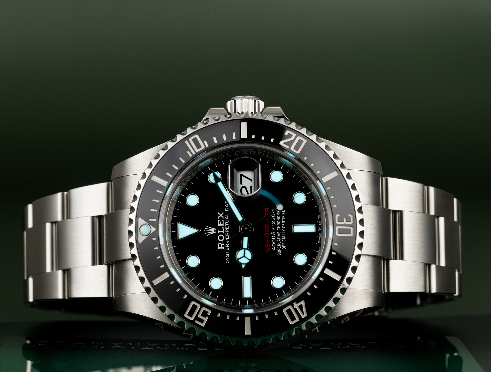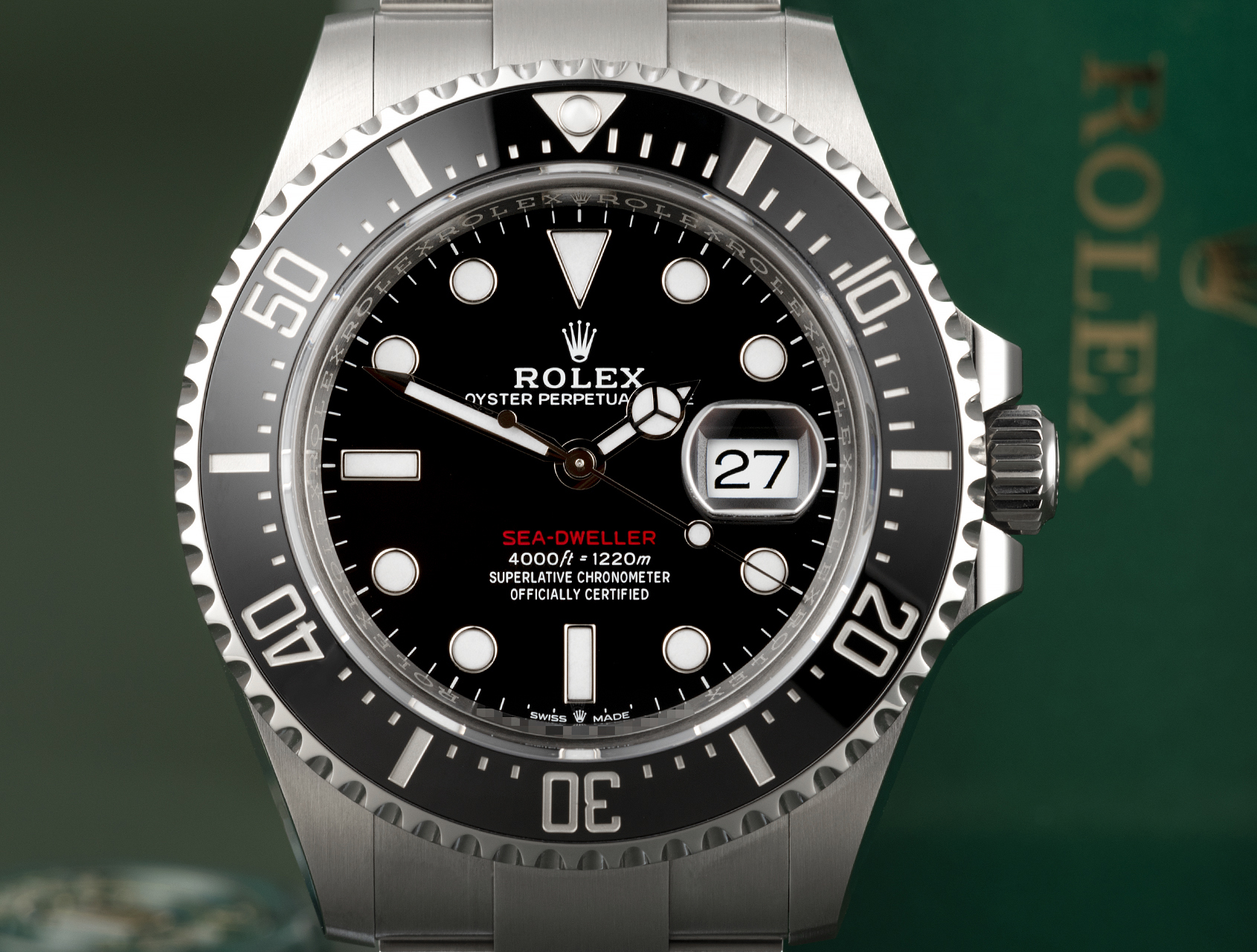 Presented complete with its Rolex box, booklets, Sea-Dweller instructions, Rolex green swing tag and Rolex International Warranty card dated July 2022.