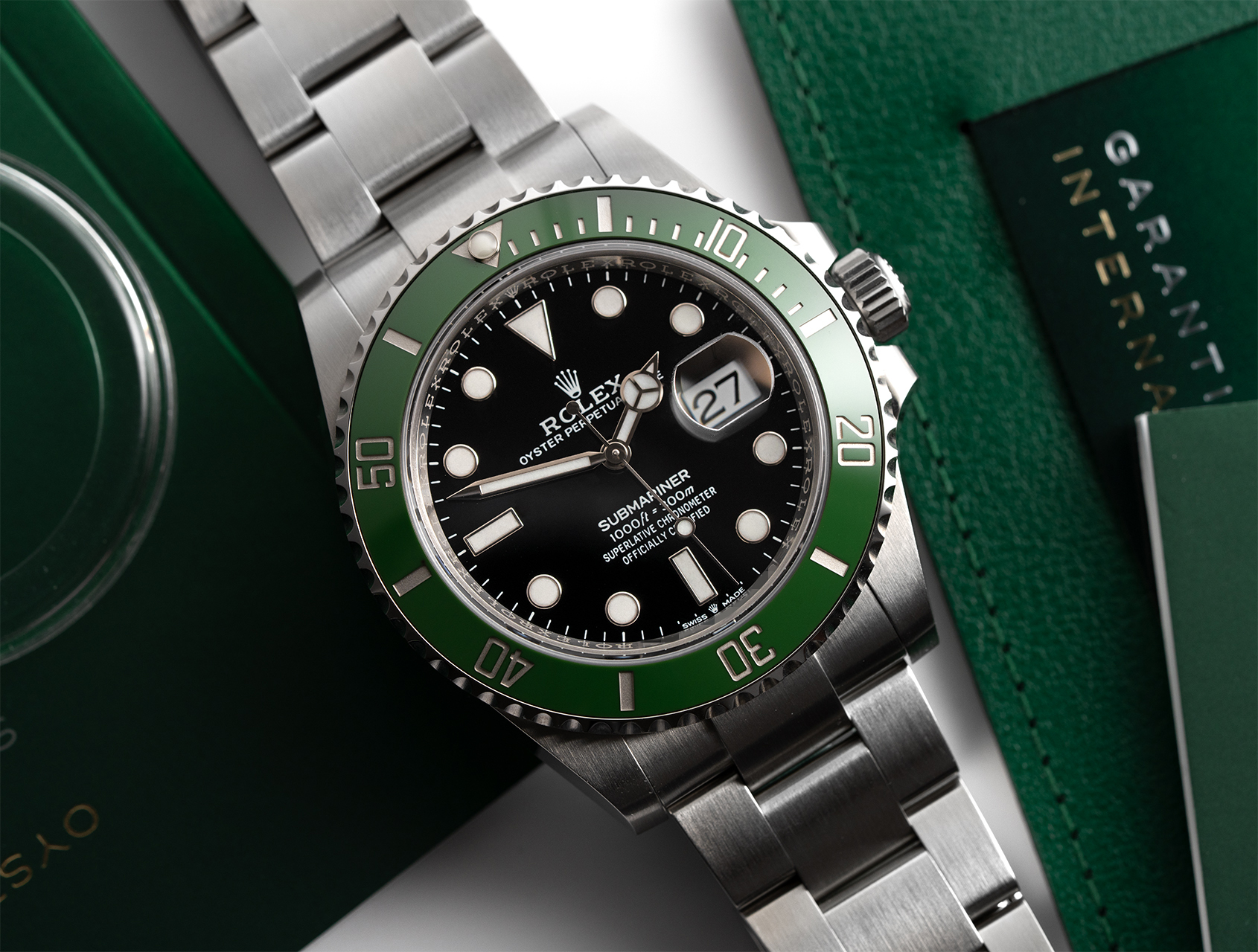 Complete with its Rolex box, booklets, Submariner instructions, both swing tags and warranty card dated March 2024.