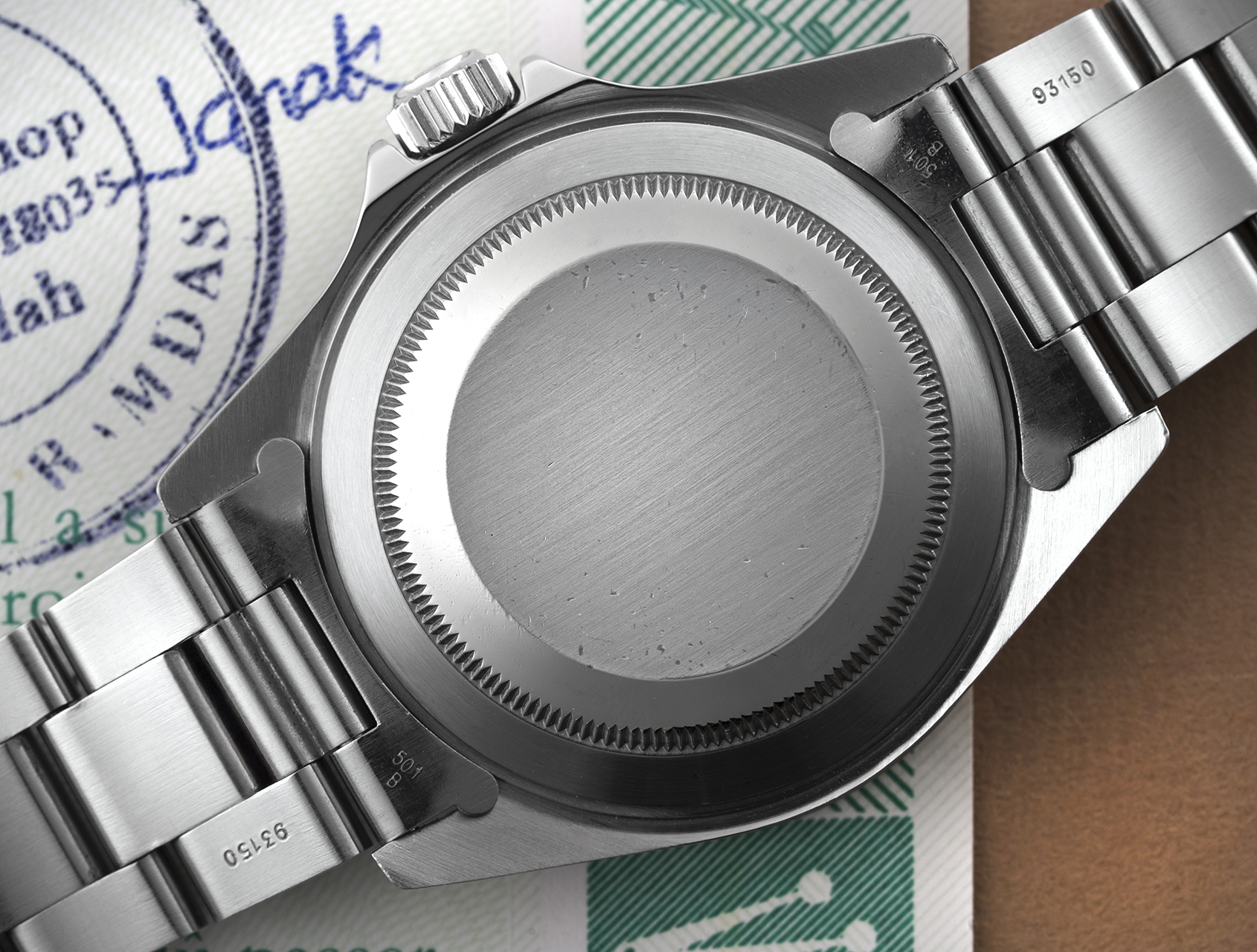 It is accompanied with its perforated Rolex certificate, inner/outer box (with correct model number sticker), and the bill of sale from Oman's Khimji Ramdas, which is now, as it was then, a hugely respected Rolex authorised dealer in the region, and supplier of the historically important Khanjar Rolex's. The original aluminium bezel, dial, and hands all have the original factory tritium fill, and the sturdy Oyster 93150 Fliplock bracelet shows very few signs of age.