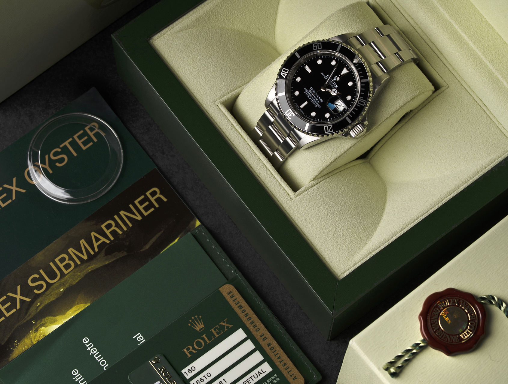 UK retailed in 2009, this Submariner Date ref. 16610 has been meticulously kept as a superb collectors set, and is offered complete with its Rolex box, Submariner instruction booklets, both swing tags and UK stamped Rolex warranty card.