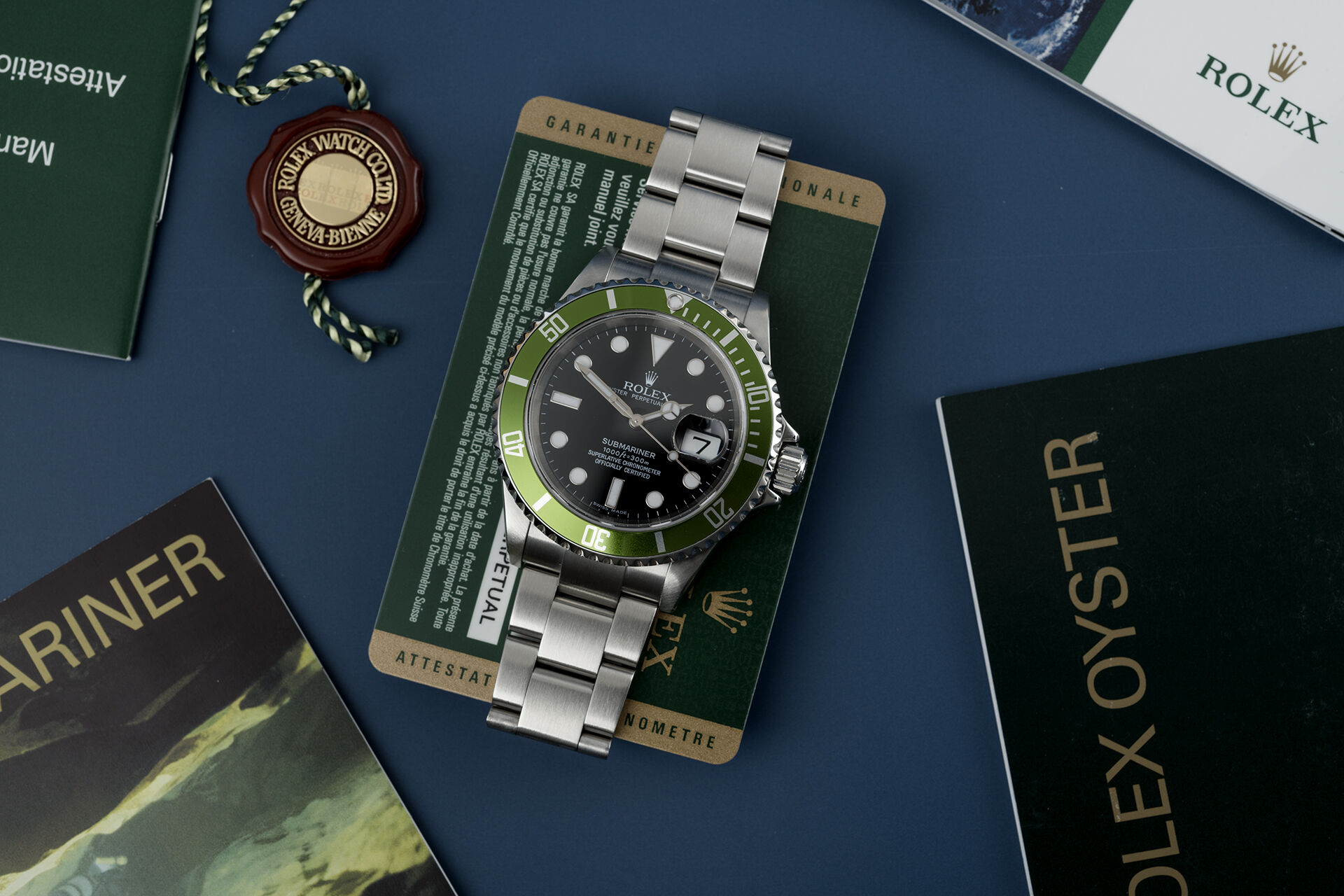 For years the phenomenal demand for the green anniversary Sub "Kermit" has surpassed everyone's expectations, as superb 'full set' examples like this get tucked away for investment.