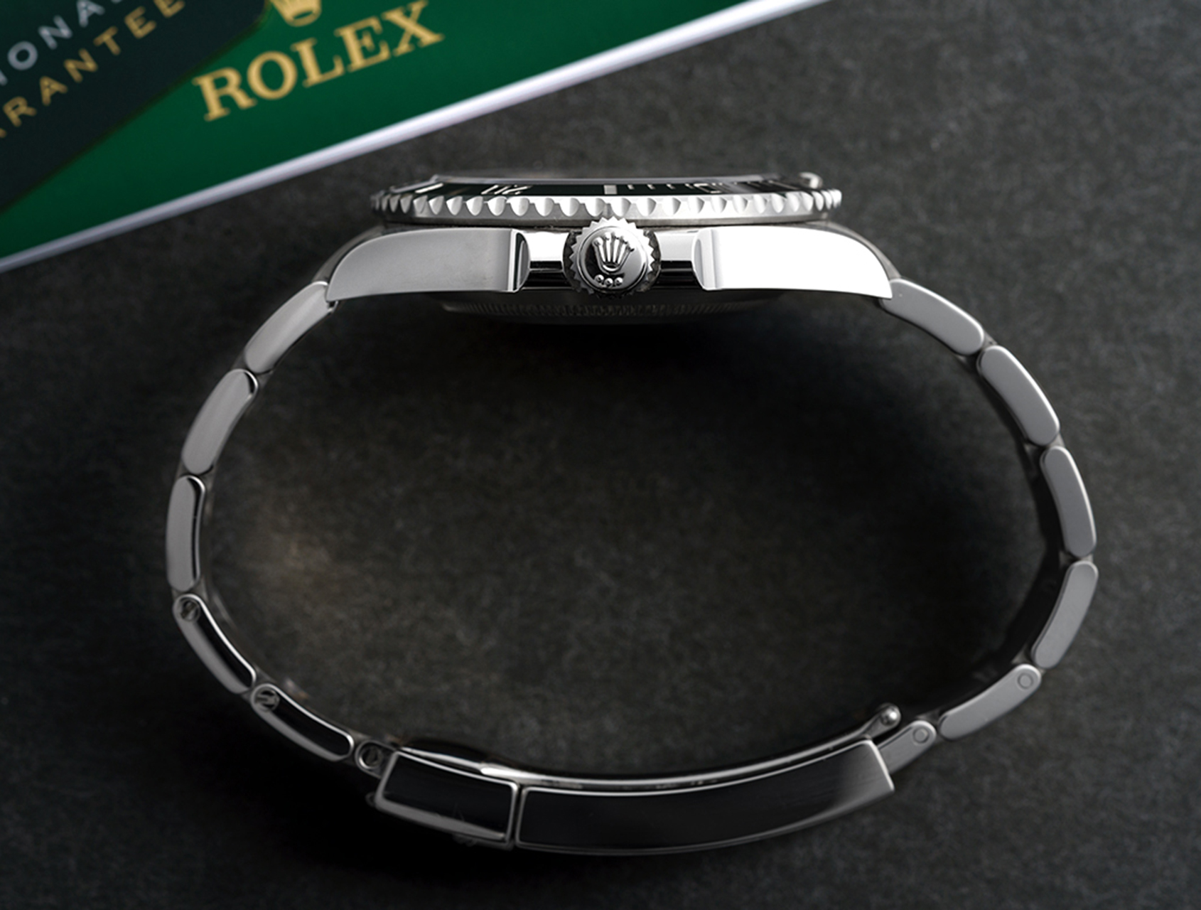 Retailed in June 2024, this latest 41mm Submariner is presented with its Rolex box, booklet, Submariner instructions, bezel protector, green swing tag, and Rolex international warranty card.