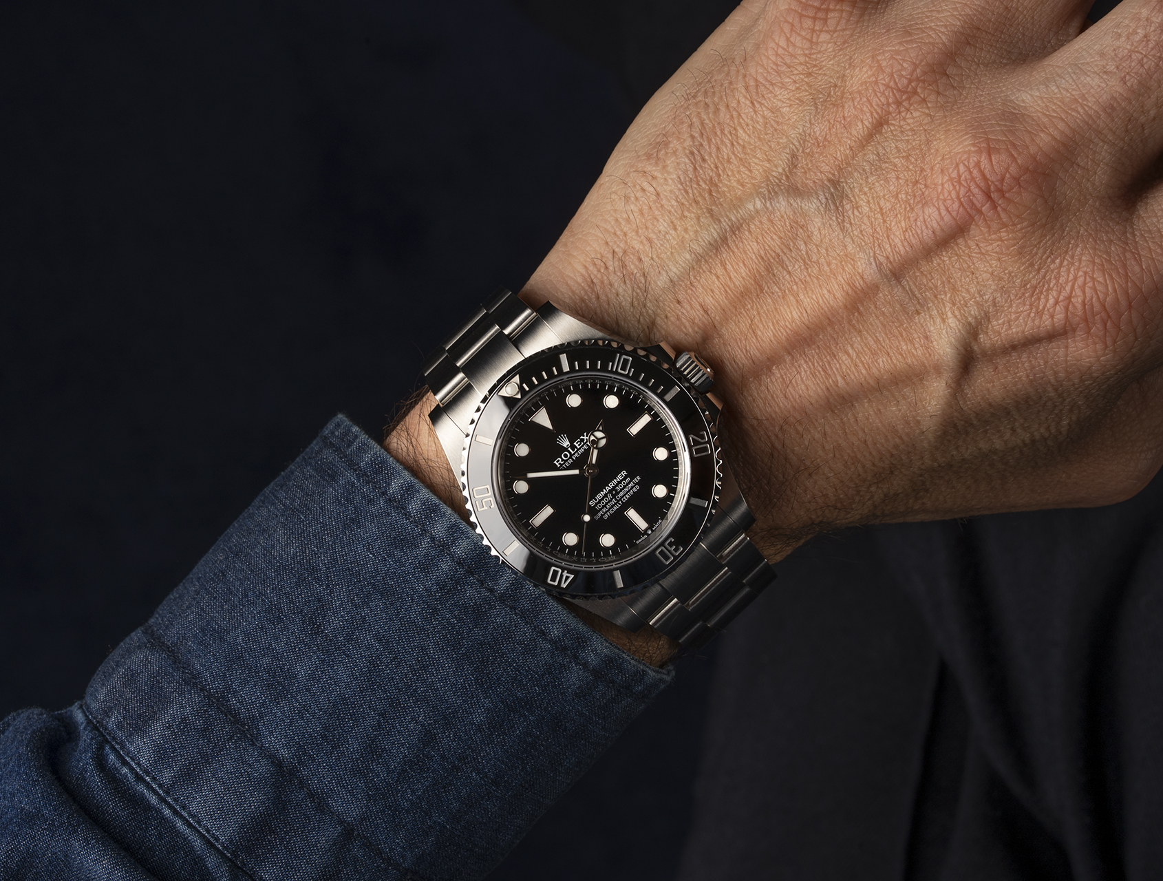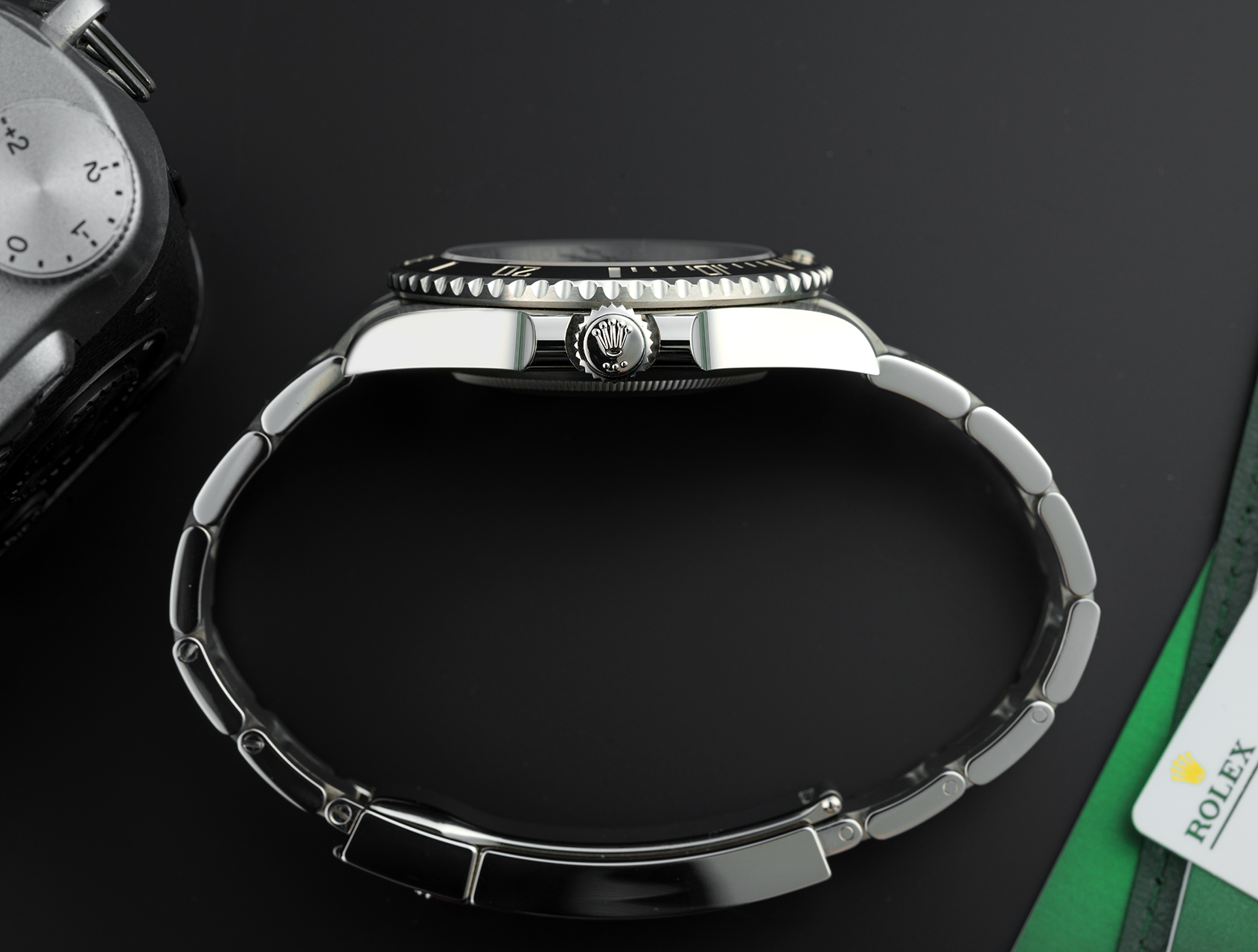 Rolex have masterfully refined the case profile of the legendary Sub, by slimming down the case lugs & crown guards, whilst still retaining its highly-legible dial with Chromalight hands & hour markers. Powered by Rolex's improved self-winding calibre 3230 movement, with 70-hour power–reserve, and waterproof to 300m.