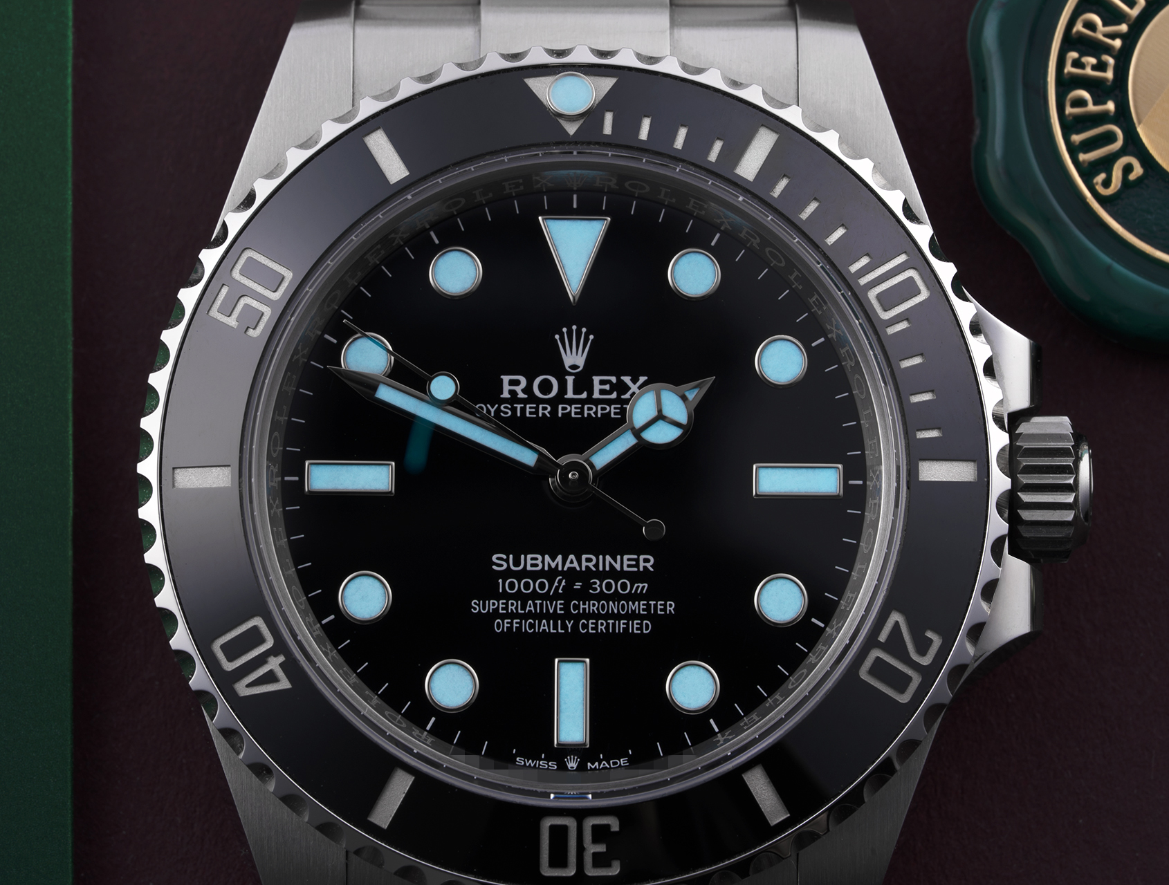 Complete with Rolex box, Submariner instruction booklets, both swing tags, Rolex International Warranty card dated September 2022 and its original UK bill of sale. This example is in exceptional unpolished condition.