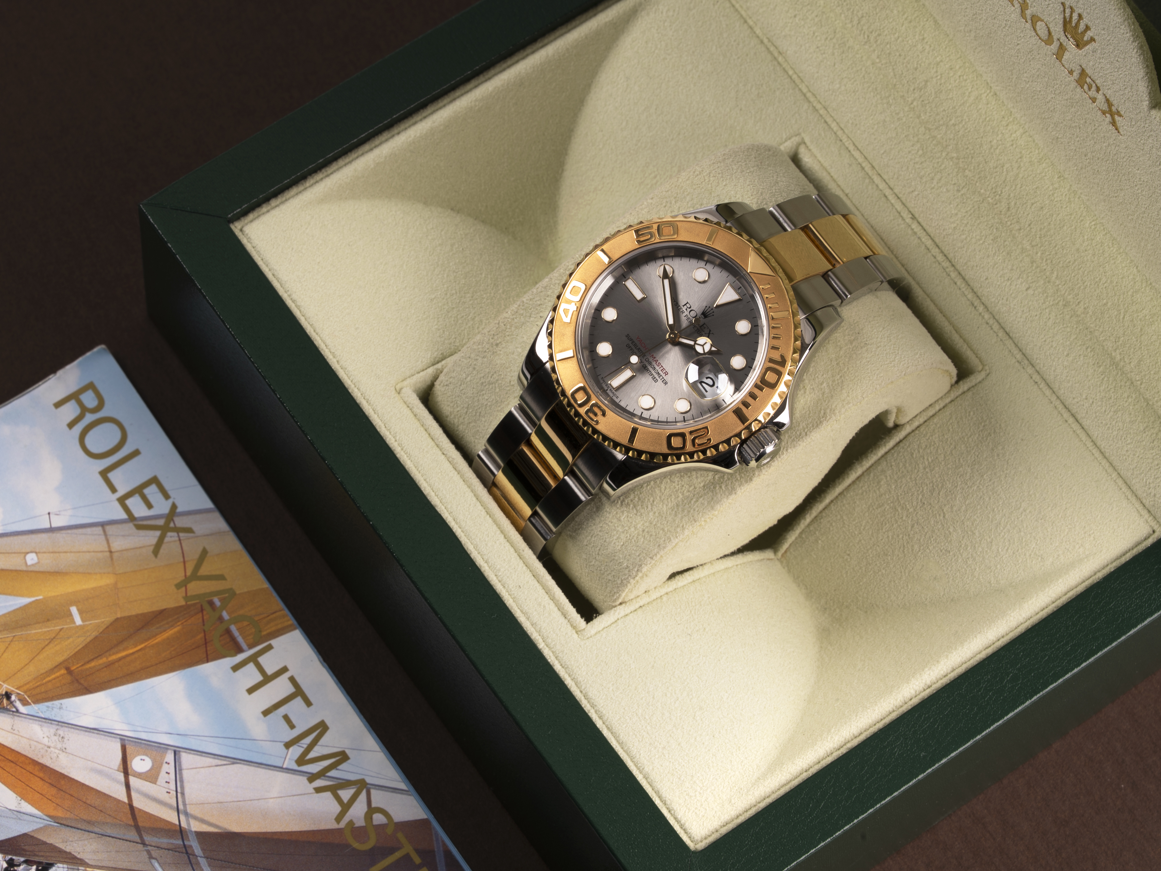 One of the best condition 18ct yellow gold & steel Yacht-Masters we've had in years! Meticulously looked after by the previous owner, this 40mm ref. 16623 is offered in outstanding - unpolished condition, and has been barely worn since it was originally purchased in 2004.